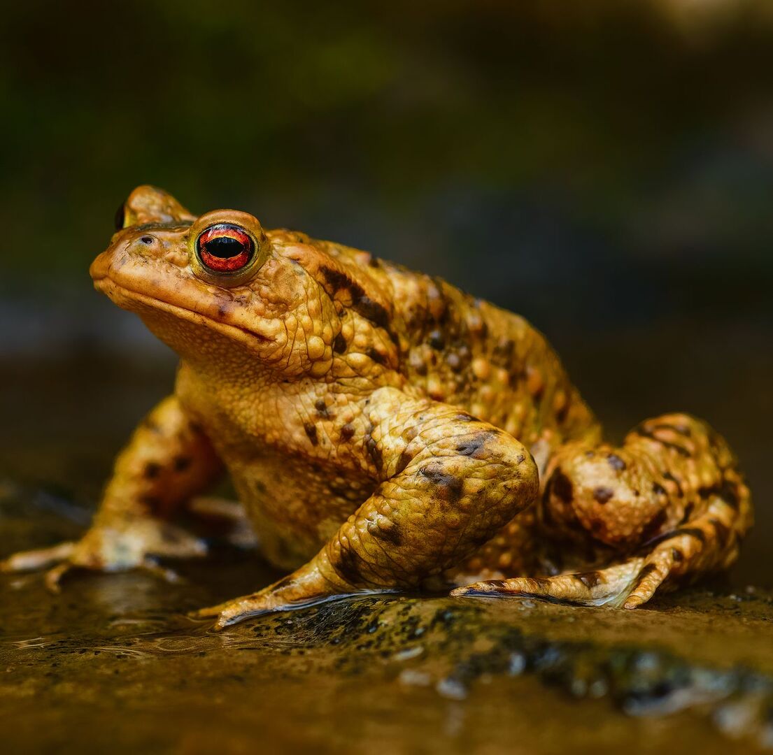 Die milde Temperatur von etwa 8 Grad Celsius und der erdige, frische Geruch wecken Vorfreude auf die kommende Zeit von spriessendem, hellgrünem Laub und langen Abenden. Plötzliches Rascheln unterbricht die Gedanken. Das Geräusch kommt unter einem Busch hervor, wo das Laub teilweise noch trocken ist. Da bewegt sich etwas! Im Schein der Taschenlampe entpuppt sich der «Täter» als kleine, etwa 15 Zentimeter grosse Erdkröte mit brauner von Warzen besetzter Haut. Mit ihren goldenen Augen mit schwarzem, waagrechtem Schlitz blickt sie um sich, bevor sie zielstrebig über das knisternde Falllaub zum nahen Weiher weitermarschiert. Am Rand der Strasse bleibt der kleine, braune Wanderer sitzen. Als er von einer bleichen Hand aufgehoben wird, krallt er sich mit den Vorderbeinchen reflexartig an zwei Fingern fest.