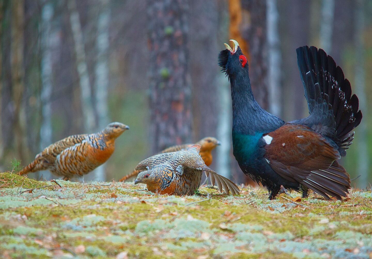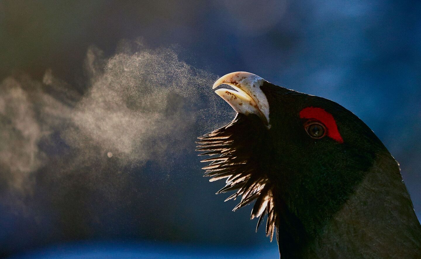Während sich im Osten ein leichter Lichtschimmer abzeichnet, geschieht es: Von der Tanne flattert ein grosser, schwarzer Vogel auf die Lichtung. Kaumgelandet, reckt er seinen Hals in die Höhe, schlägt mit den Schwanzfedern ein Rad, klappert und zischt. Er bleibt nicht lange alleine, weitere Artgenossen tun es ihm gleich. Die Waldgeister, die eben noch unheimlich von den Wipfeln riefen, entpuppen sich als Auerhähne. Und der Mann im Zelt beobachtet alles regungslos, mit gebanntem Blick.