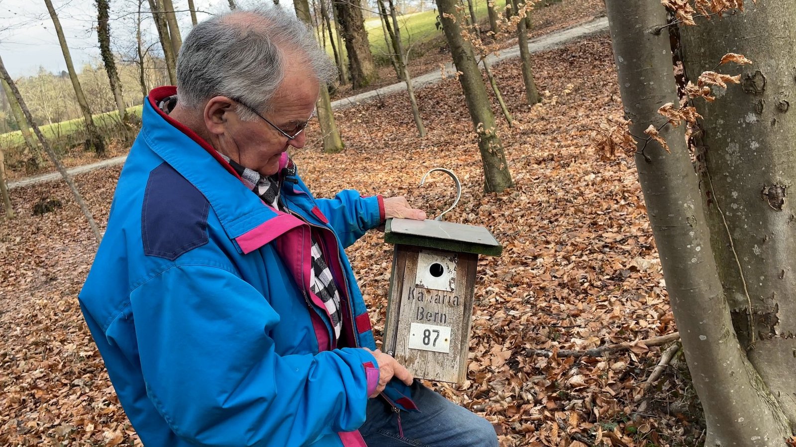Hans Iseli kümmert sich um die Kästen. Kaputte Kästen nimmt er für die Reparatur zurück in seine Werkstatt. Dort stellt er auch selbst neue her. Wir haben ihn Anfang März auf einen Rundgang begleitet.