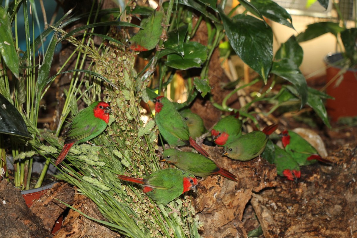 Die im Titel aufgeführten Arten ernähren sich zu einem grossen Teil alle von Sämereien und Körnern. Prachtfinken und Kanarienvögel sind Finkenvögel, Wellensittiche gehören zu den Papageien, wie auch der Rosakakadu auf dem grossen Bild. Er tut sich an Papaya gütlich. Diese Frucht enthält wichtige Enzyme. Darauf weisen ihre Schnabelformen hin. Finken haben breite Schnäbel, Papageien gebogene. Beide Schnabelformen eignen sich zum Entspelzen und Knacken von Samen. Die Haltung von Samen fressenden Vögeln ist einfacher, als diejenige von Insektenfressern. Für Körnerfresser gibt es ein breites Angebot an Samenmischungen im zoologischen Fachhandel. Ihre Ausscheidungen sind kompakt und kaum dünnflüssig.