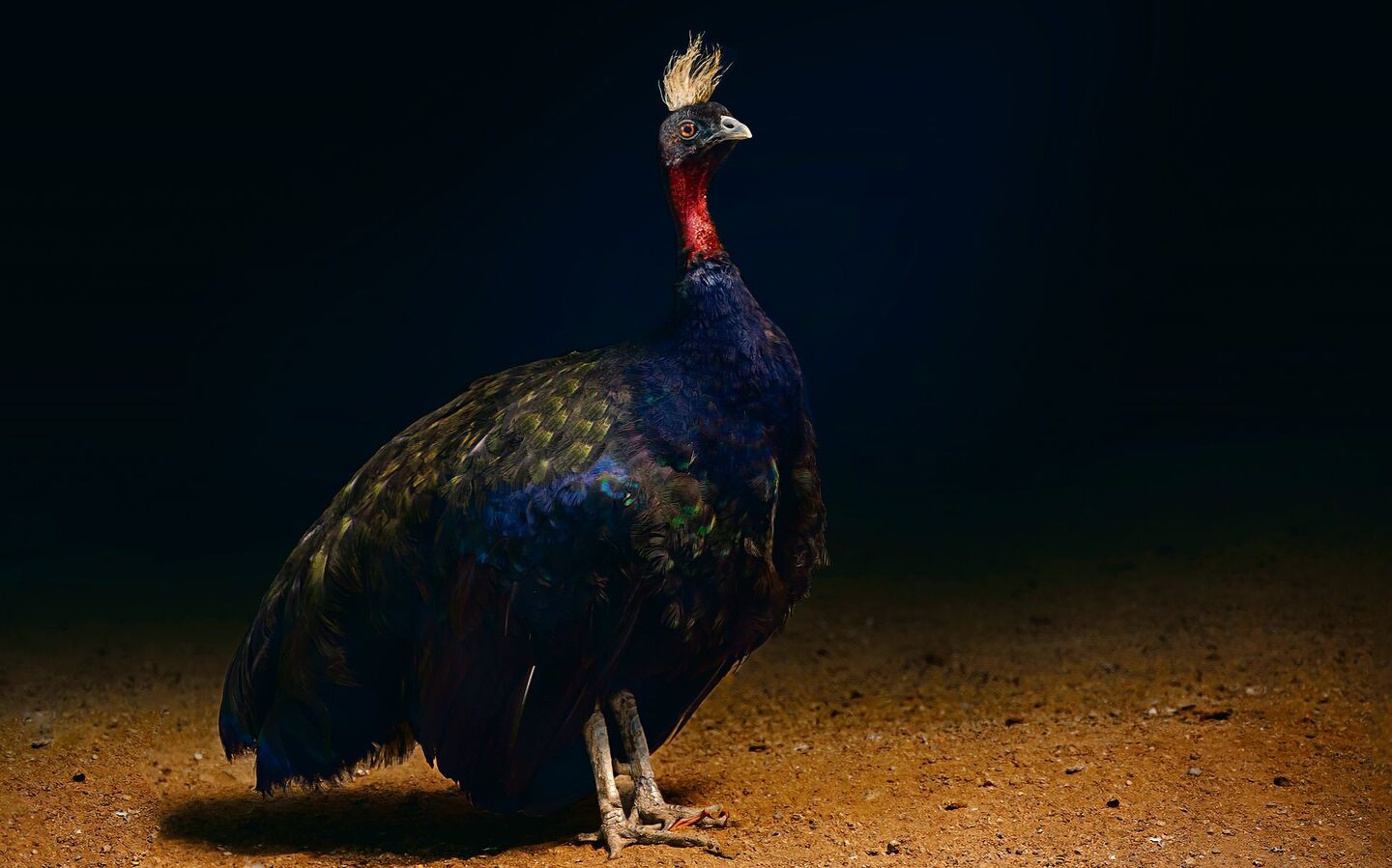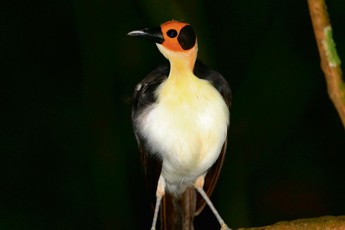 Andere Regenwaldbewohner wiederum glänzen mit kahlen Köpfen. Weiter nördlich im Westen Afrikas lebt ein weiterer unbekannter Vogel: die Stelzenkrähe. Der Kopf ist nackt und leuchtet gelb und orange. Sie lebt in Schluchten im Tropenwald, die Buntkopf-Stelzenkrähe in Westafrika und die Gelbkopf-Stelzenkrähe eher im zentralen Afrika. Die Gelbkopf-Stelzenkrähe beispielsweise verbirgt sich tief im Regenwald Gabuns, etwa dort, wo sich ein Bach immer mehr in eine felsige Schlucht frisst. Tief unten rauscht bernsteinfarbenes Wasser, darüber der Baldachin des Regenwaldes. Es sind Koloniebrüter, die ihre ein bis zwei weissen Eier in die Nester legen, die aussehen, als wären sie von grossen Schwalben gefertigt. Stelzenkrähen halten sich vor allem am Boden auf und suchen dort nach Insekten und Würmern. In der Haltung und Zucht der Stelzenkrähen hat sich der Frankfurter Zoo hervorgetan. 1971 gelang dort die Welterstzucht der Buntkopf-Stelzenkrähe, 1966 gar diejenige der Gelbkopf-Stelzenkrähe. Die Haltung beider Arten ist aber erloschen.