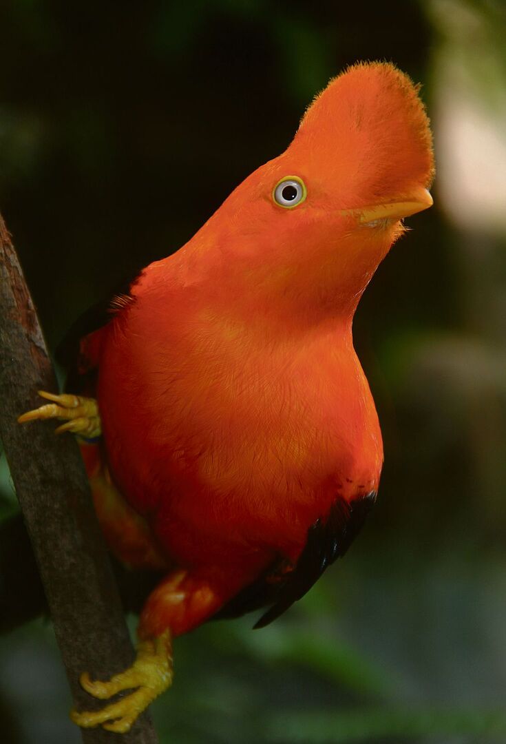Im Gegensatz zur Stelzenkrähe lebt der Felsenhahn in wenigen europäischen Parks. Die nächste Möglichkeit, diese Exklusivität zu sehen, ist der Parc des Oiseaux im französischen Villars-les-Dombes, etwa eine knappe Autostunde von Genf aus in Richtung Westen. Der Faszination dieser exotischen Schönheit kann sich niemand entziehen. Ein orangeroter Federball leuchtet und schillert aus dem Grün der Vegetation. Der rote, samten wirkende Helm verbirgt den grössten Teil des Schnabels und lässt den Wundersamen aus dem Dschungel aussehen wie einen römischen Legionär. Schwingen und Schwanz sind pechschwarz, der Rücken silbern. Ein Gefiederter, der sich wie ein Würdenträger in vollem Ornat präsentiert. Das Weibchen ist völlig unscheinbar braun gefärbt, doch ihm gilt die Schönheit der Männchen.