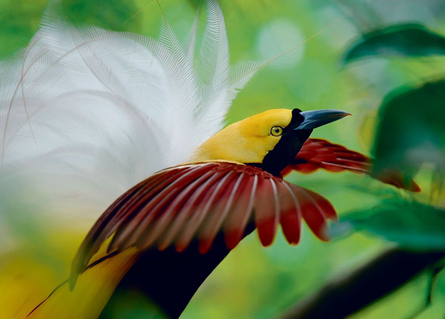 Weit oben in 25 Metern Höhe, ein waagrecht wachsender Ast in einer Baumkrone bildet die perfekte Bühne für eine aussergewöhnliche Tanznummer: Ein Grosser Paradiesvogel flattert in der Dämmerung darauf, ein zweiter kommt hinzu. Dann treffen die Sonnenstrahlen wie Scheinwerfer die Bühne – das Schauspiel ist nun in vollem Gange. Grosse Paradiesvögel plustern ihre seidenen Federn zu einem Schweif, strecken ihre rostbraunen Schwingen, recken die Köpfe und rufen kehlig schrill in den Morgen der Aru-Inseln, einer indonesischen Inselgruppe südlich vor dem westlichsten Zipfel der Insel Neuguinea.