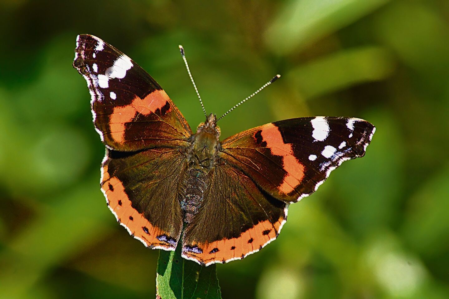 Der Admiral (grosses Bild) gehört zu den Wanderfaltern, fliegt also wie ein Zugvogel in mediterrane Gebiete, um zu überwintern. Im Zuge des Klimawandels überwintern inzwischen viele auch in Mitteleuropa. Einwanderer aus dem Süden kehren ab April zurück. Wie der Kleine Fuchs, legt auch der Admiral nur an Brennnesseln seine Eier ab. Die Raupen sind gelblich grau oder schwarz und tragen Dornen. Der Admiral gaukelt im lichten Wald, an Waldrändern aber auch entlang von Hecken, in Gärten und im Siedlungsraum.