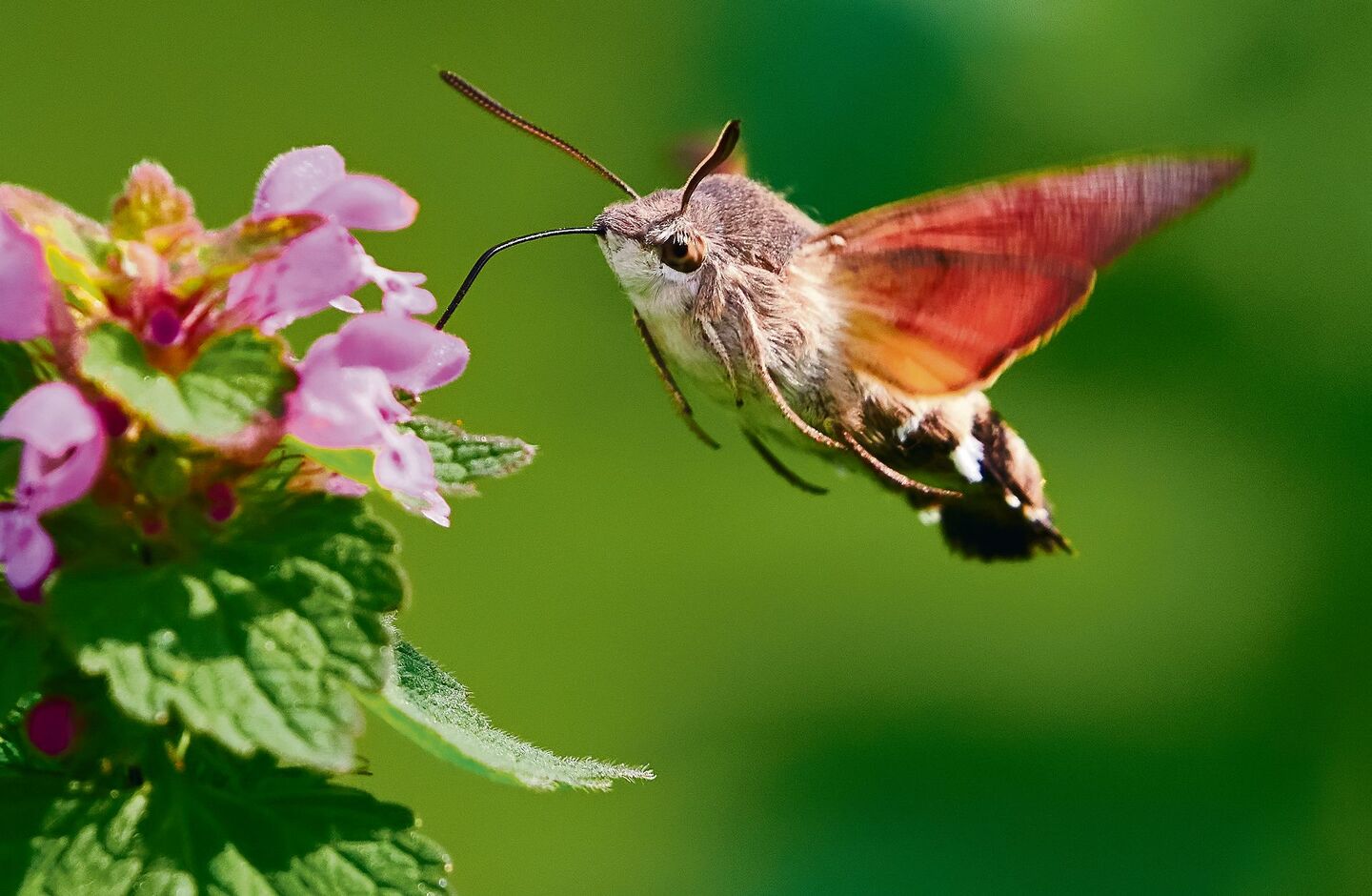 Die Vermutung, dass da plötzlich ein Kolibri fliegt, ist gar nicht so abwegig, denn der Flug des zu den Schwärmern gehörenden Falters gleicht demjenigen der Tropenjuwelen. Er bleibt vor einer Blüte, beispielsweise des Geissblatts, stehen, taucht den Rüssel ein, um Nektar zu saugen und schwirrt weiter. Taubenschwänzchen sind überall dort, wo es viele Blüten hat. Eier werden am Labkraut gelegt.