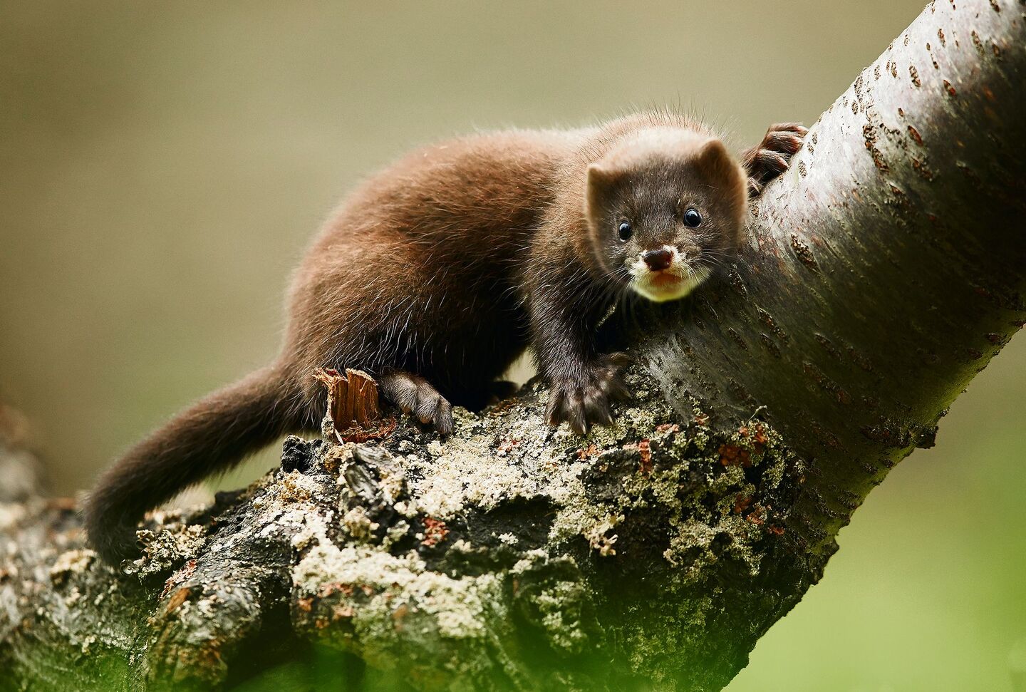 Europäischer NerzDer Europäische Nerz (Mustela lutreola) unterscheidet sich vom Amerikanischen Nerz oder Mink (Neogale vison) nicht nur dadurch, dass er kleiner ist. Bei ihm ist die ganze Schnauze weiss, wohingegen der Amerikanische Mink nur eine weisse Unterlippe aufweist, manchmal hat er noch einen weissen Kehlfleck. Der Europäische Nerz gehört zur Familie der Marder. Er ist mit dem Europäischen Iltis verwandt. Das braune Fell ist dicht, da er sehr oft schwimmt und taucht. Wegen Lebensraumzerstörung und Bejagung ist er fast in ganz Europa ausgerottet.