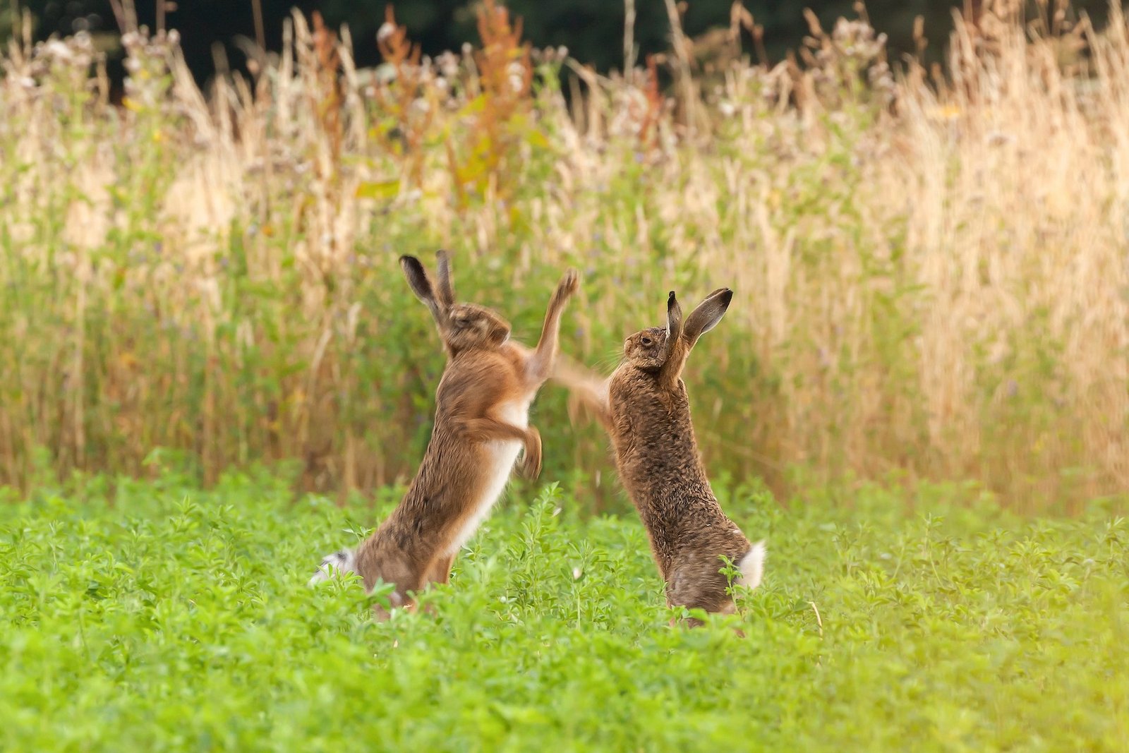 Der vorwiegend nachtaktive Feldhase lebt einzelgängerisch. Nur zur Paarungszeit, in der Jägersprache als Rammelzeit bekannt, versammeln sich die Tiere zu einer Hasenhochzeit. Fortpflanzungsfähig sind die Häsinnen in Mitteleuropa von Januar bis September, der Höhepunkt der Paarungszeit ist allerdings im April. In einer wilden Hetzjagd verfolgt ein Männchen ein Weibchen. Hat sie genug, verpasst sie ihm ein paar kräftige Ohrfeigen, die er gerne erwidert. Schliesslich muss er seine Kraft und Ausdauer unter Beweis stellen, damit sich seine Angebetete für ihn entscheidet. Romantik wird bei den sozial unbeholfenen Feldhasen anders definiert. Dieses Spektakel verfolgt Rainer Klöti jeweils mit grossem Vergnügen. Er ist fasziniert von den Tieren und ihren Verhaltensweisen.