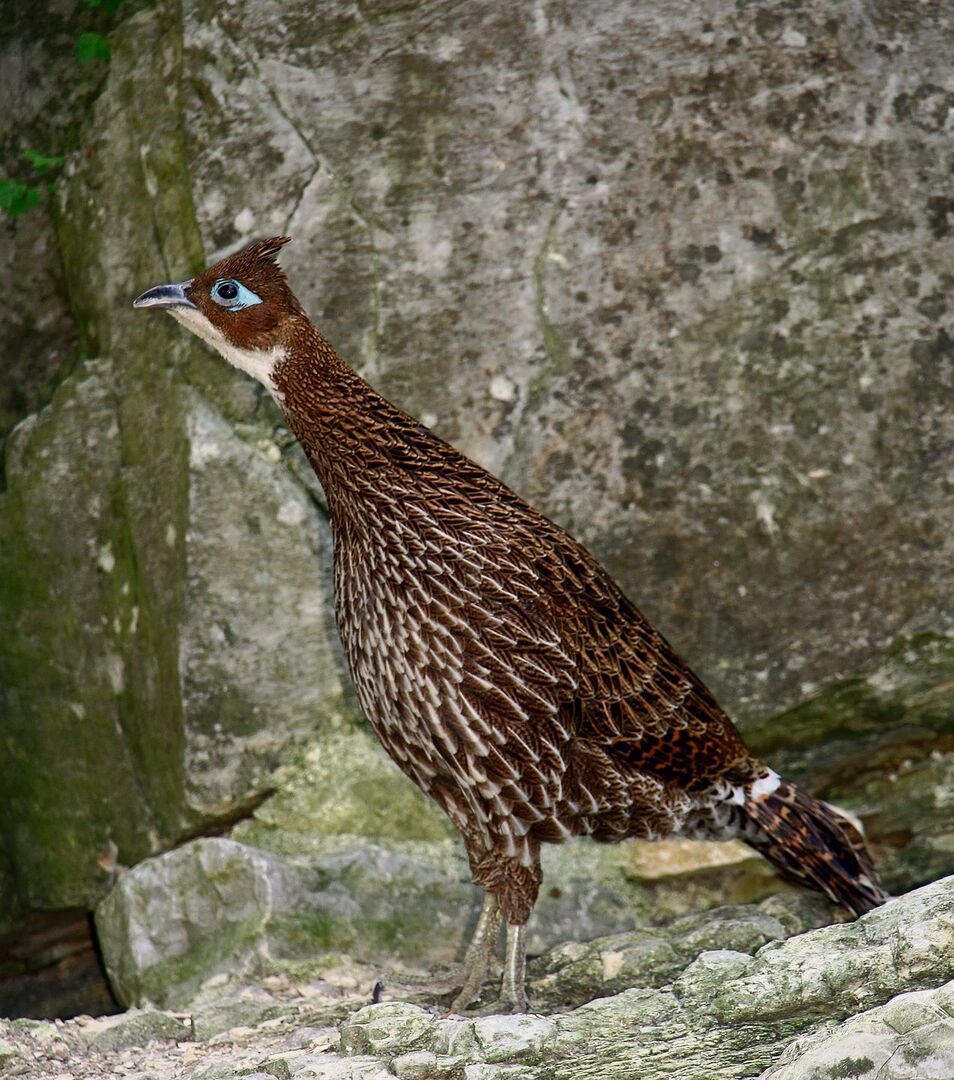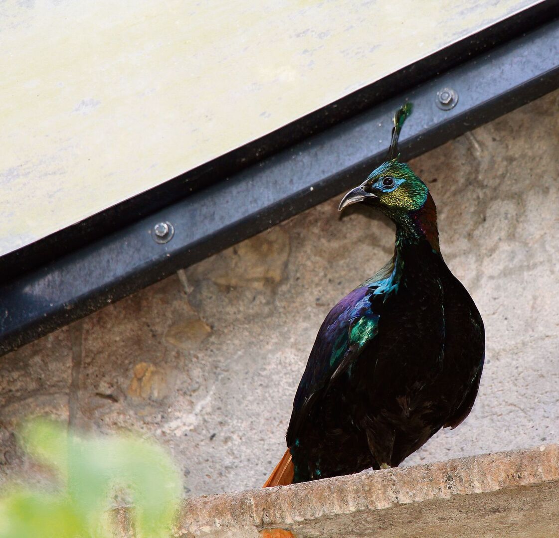 So funkelt das Gefieder des Rostschwanz-Glanz-fasans von der höchsten Stelle eines Felsens. «Dieses Paar hält sich von Anfang an draussen auf», sagt Margarete Sandmeier, die seit zwei Jahren die Vögel betreut. «Ich freue mich über die neuen Pfleglinge, das Konzept und die Volierengestaltung sind gut», betont sie. Die Vögel könnten auch einen angrenzendenInnenraum nutzen. Wobei: Kalte Witterung macht diesen Gebirgsvögeln überhaupt nichts aus. Die Eckvoliere läuft in die Schlossmauer über und wurde mit natürlichem Felsen gestaltet, der sich in die Höhe zieht. So ist das Dach der Anlage zeltartig gestaltet.