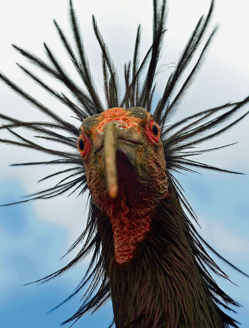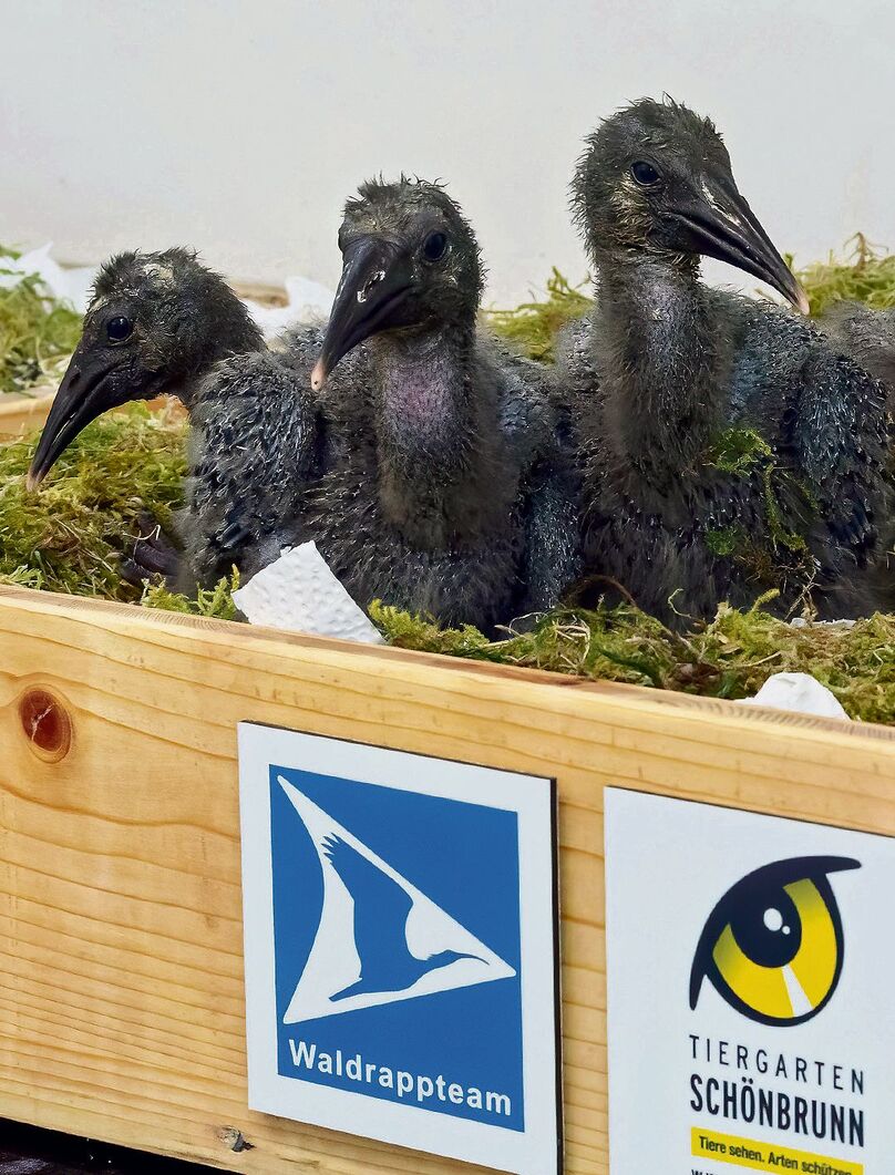 Er hat Charakter und ist von herber Schönheit. Der Waldrapp ist ein besonderer Vogel. Seine Attraktivität zeigt sich auf den zweiten Blick. Die schwarzen Federn des Ibisvogels von der Grösse einer kleinen Gans schillern metallisch, die Federboa am Hinterkopf in Kombination mit dem langen, roten, gebogenen Schnabel verleiht ihm etwas Keckes. Der Schnabel ist eine Spezialisierung. Der Waldrapp oder Schopfibis ernährt sich bis zu 90 Prozent von Würmern und Larven. Der taktile Jäger stochert damit etwa 10 Zentimeter im Boden, fühlt seine Nahrung und zieht sie heraus, um sie zu verschlingen. Seine Augen sind im hinteren Bereich angelegt und eignen sich besonders zur Feindvermeidung.