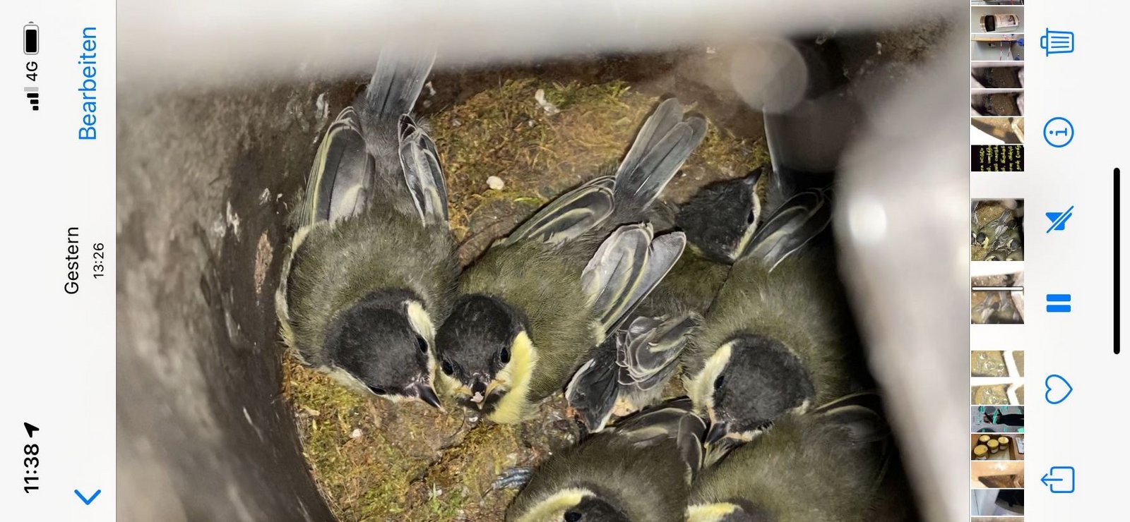 Trotz seiner Liebe zu den Vögeln lässt er ihnen genug Freiraum und kommt vor allem der Mutter nicht zu nahe, denn er möchte, dass sie noch weitere Jahre auf seinem Schulhof nistet und seinen Schutz geniessen kann. Die fleissige Meisenmutter sei ständig auf Futtersuche für ihre sechs Vögelchen gewesen. Mittlerweise seien jedoch schon vier ausgeflogen und nur noch zwei befinden sich im Nest.