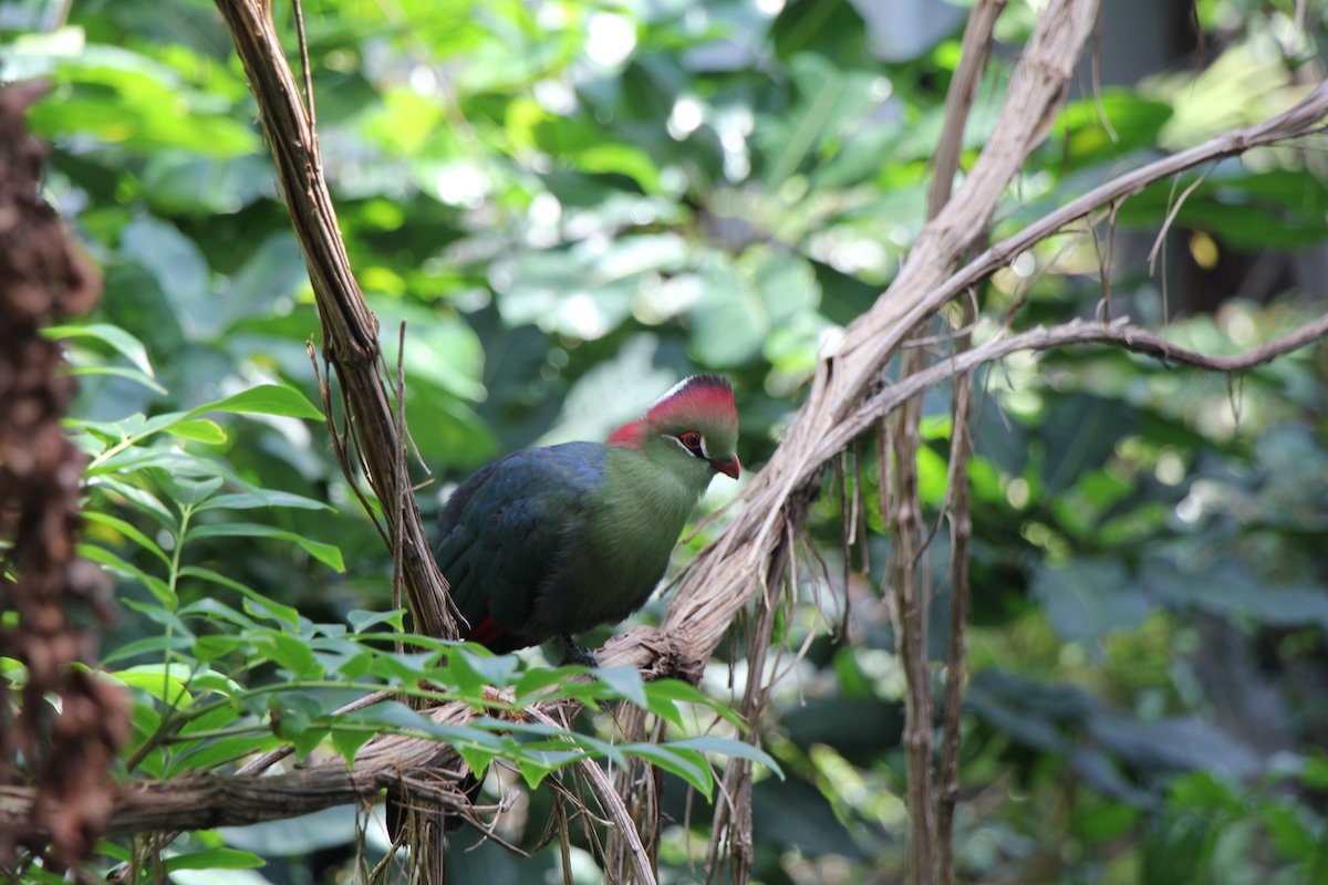 Die Vogelkuratorin Jess Borer sagt zur Vogelwelt: «Hier in der Halle fliegen derzeit 18 Arten aus tropischen Zonen verschiedener Kontinente frei.» Aus der Höhe ruft zweisilbig ein Fischerturako. Obwohl der Afrikaner erst neu eingesetzt wurde, scheint er sich wie zuhause zu fühlen. Kein Wunder, denn das Weibchen lebte bereits in der alten Freiflughalle und freut sich offensichtlich, wieder zurück zu sein.
