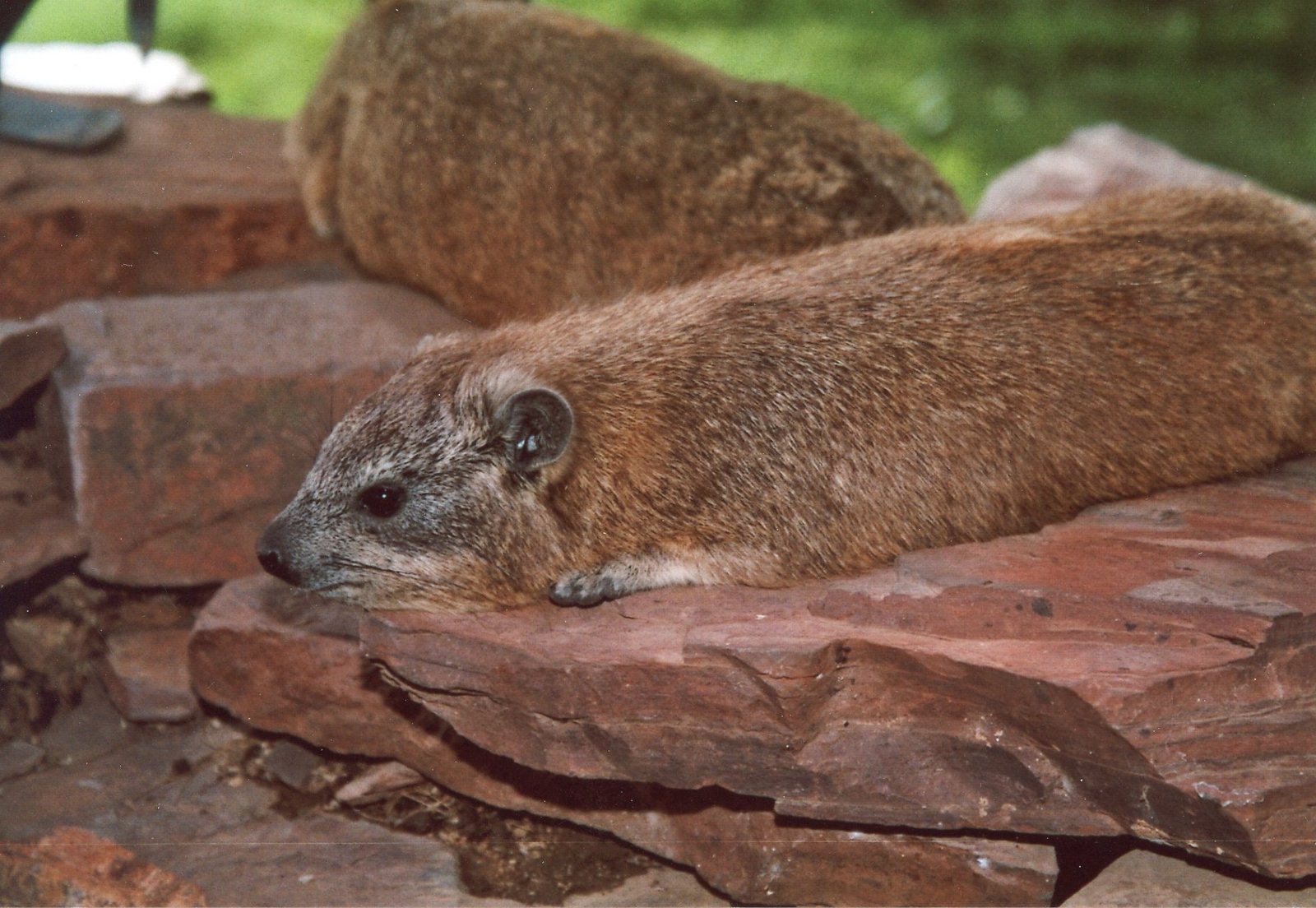 Der Eingangsweg ist von aufeinandergeschichteten Steinplatten gesäumt, auf denen sich Klippschliefer ausruhen. Sie haben sich an die vielen Besucherinnen und Besucher gewöhnt. An besonderen Stellen befinden sich ganze Ansammlungen von Kothäufchen, da die reinlichen Schliefer die Angewohnheit haben, ihren Kot an gleicher Stelle abzusetzen.