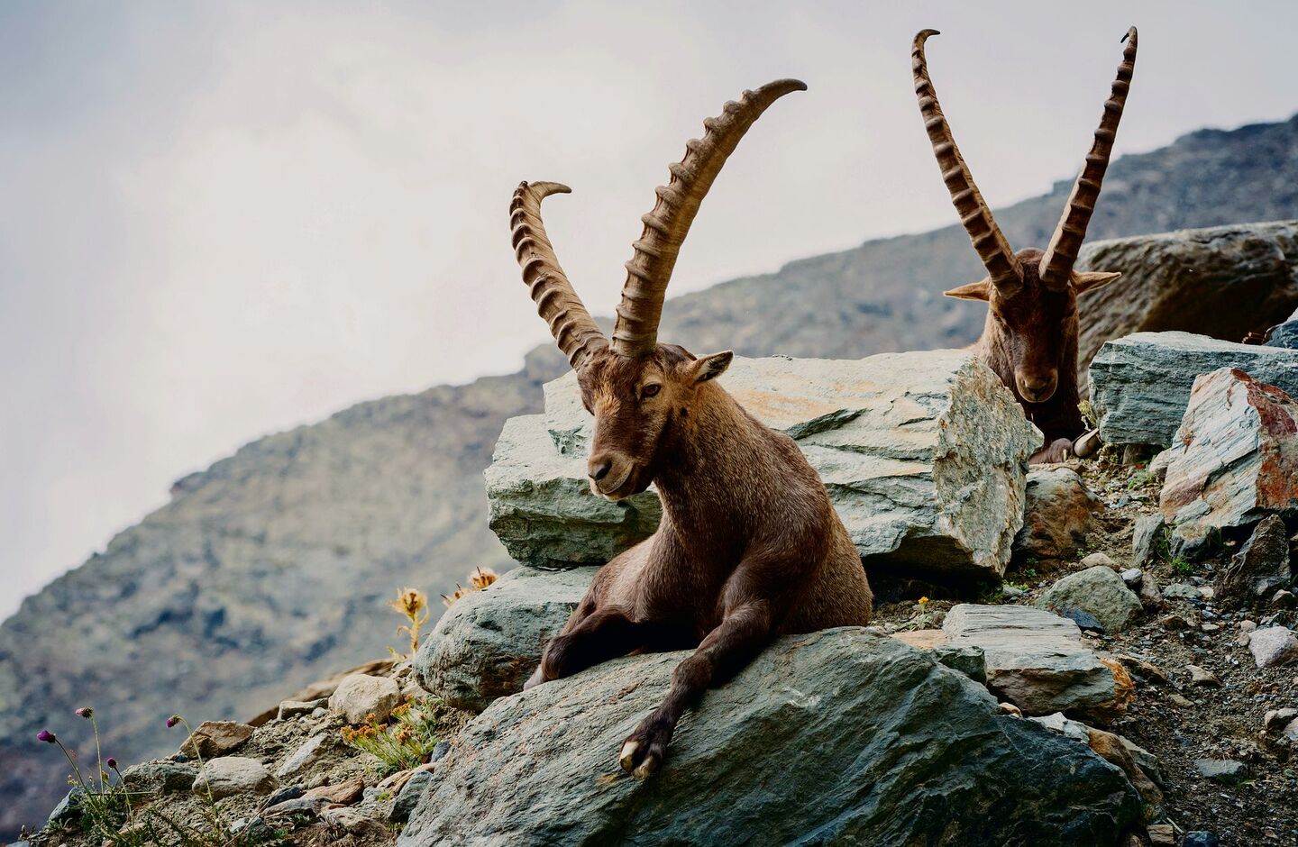 Das Alter der Steinböcke lässt sich an den ringförmigen Vertiefungen der Hörner ablesen.