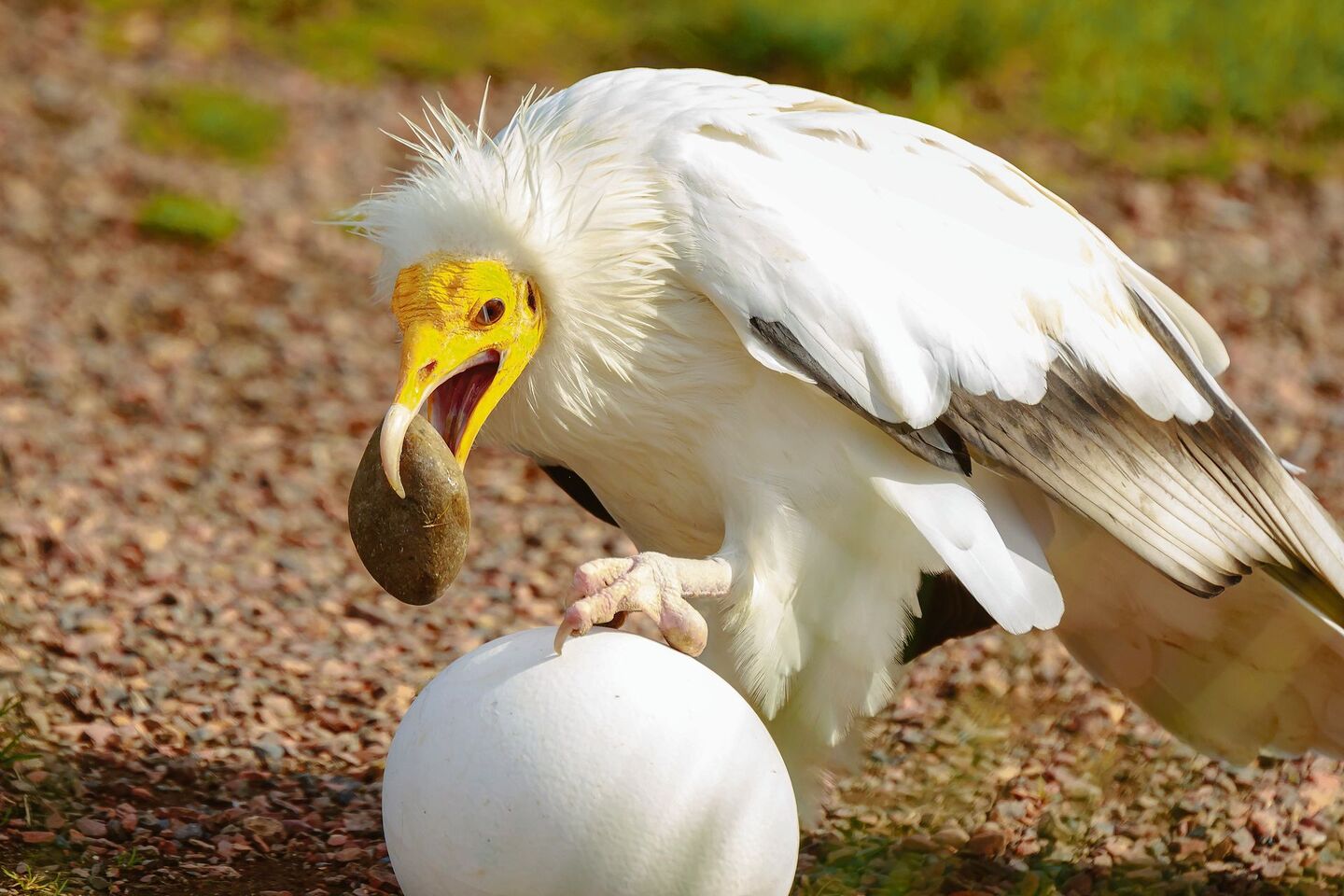 Würden Schmutzgeier (Neophron percnopterus) ihre Beute fallen lassen, so würden sie einen Grossteil der Nahrung verlieren. Die grossen Greifvögel lieben Eier und knacken sie besonders vorsichtig, damit deren Inhalt nicht ausläuft. Bei grossen Eiern nehmen sie dafür einen Stein zur Hilfe, den sie gezielt auf die dicke Schale werfen, bis sie bricht. In Bulgarien nutzen die Geier zudem Stöcke, um am Boden liegende Schafswolle zusammenzurechen und aufzusammeln. Diese Wolle verwenden die Tiere gerne zum Polstern der Nester. Andere Greifvögel wie der Schwarzmilan(Milvus migrans), der Keilschwanzweih (Haliastur sphenurus) und der Habichtfalke (Falco berigora) sind dafür bekannt, dass sie während eines Feuers in der australischen Savanne brennende Stöcke wegtragen und damit weitere Vegetation in Brand setzen. Die Vögel jagen dann vor dem Feuer fliehende Kleinsäuger und fressen auch an Kadavern von dem Brand zum Opfer gefallener grösserer Tiere. Ihr pyromanisches Verhalten erschwert dabei oft die Bemühungen der Feuerwehr, die Buschbrände unter Kontrolle zu bekommen. [IMG 3]