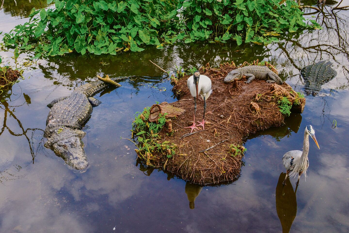Dass sich Tiere ihre Umgebung und das Verhalten anderer Arten zunutze machen, ist also offenbar kein so seltenes Phänomen. Sogar Krokodile wie der Mississippi-Alligator (Alligator mississippiensis) und das Sumpf-Krokodil (Crocodylus palustris) haben Strategien entwickelt, um sich die Jagd zu erleichtern. Während Reiher ihre Nester bauen und nach geeig-neten Ästen Ausschau halten, platzieren die Echsen besonders schöne Stöcke im Wasser, um die Vögel anzulocken und im richtigen Moment zuzuschnappen.