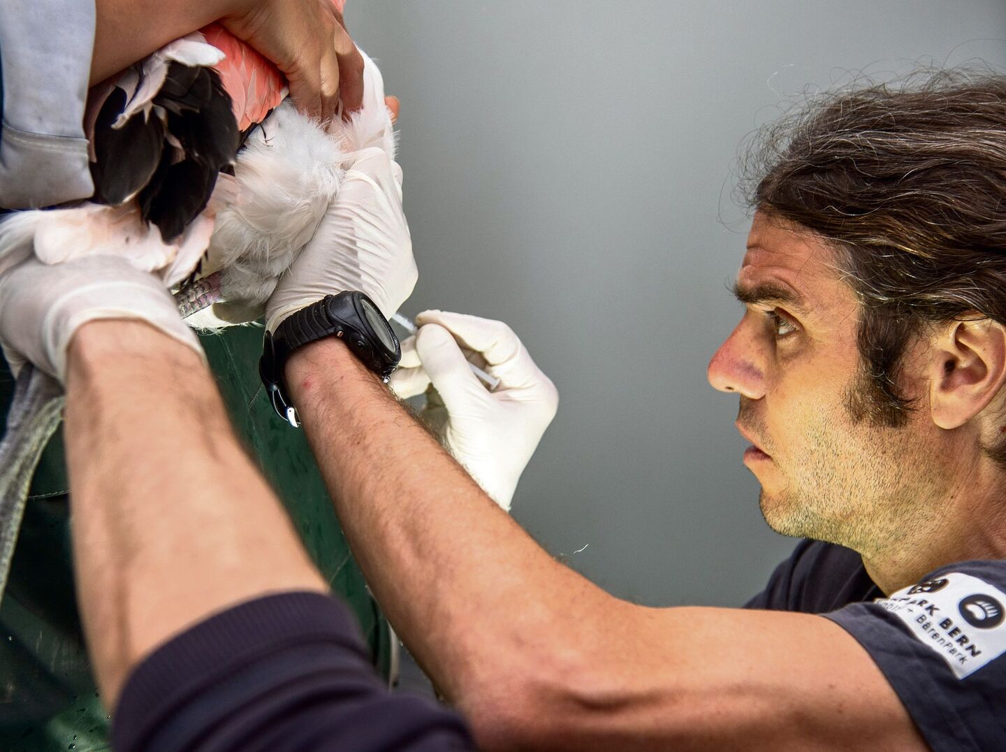 2023 wurde darum ein wissenschaftliches Impfprojekt als Versuch gestartet. Im IVI wurde bereits vor mehr als zehn Jahren ein Impfstoff gegen Vogelgrippe entwickelt, der an Hühnern getestet wurde. Würde er auch andere Arten schützen? Er wurde in Zusammenarbeit mit dem Tierpark Bern und dem Basler Zoo adaptiert. Bisher seien 24 Vogelarten geimpft worden, vom Uhu über das Auerhuhn bis zum Brillenpinguin. Mit Erfolg informierten die Tierärzte beider Zoos.