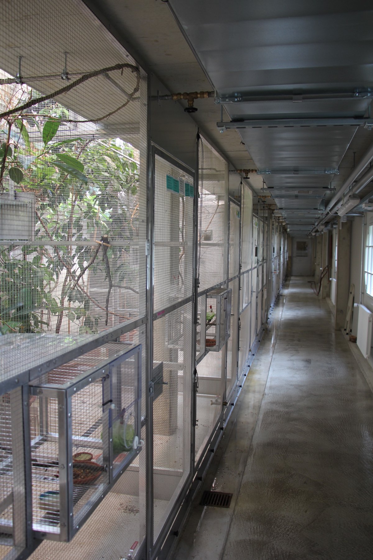 Für die Jungvögel hat der Zoo ausreichend Platz hinter den Kulissen. Auf der Zwischengalerie im hohen Vogelhaus befinden sich in einem langen Gang 14 Zuchtvolieren. Jess Borer: «Hier werden tatsächlich Vögel gezüchtet, doch wir benützen diese Volieren auch als Haltungsmöglichkeit für Arten, deren Zucht in der Halle gelang.» Hier klappte erstmals im Basler Zoo die Zucht des Veilchenorganisten, einer Art aus dem tropischen Südamerika. Weiter haben sich die Blaukrönchen in der Zuchtanlage vermehrt, eine kleine asiatische Papageienart. «In der Halle leben derzeit lediglich zwei Männchen. Dank der Nachzucht hinter den Kulissen können wir ihnen hoffentlich bald auch zwei Weibchen zugesellen», erzählt Jess Borer.