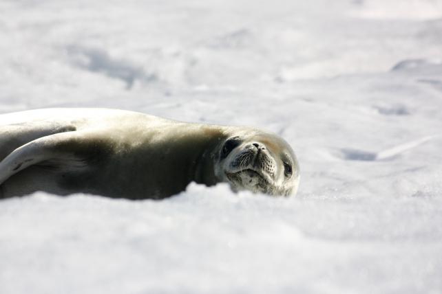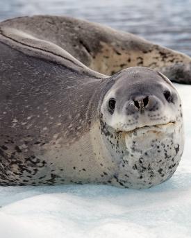 Seeleoparden verdanken ihren Namen der gefleckten Haut. Charakteristisch ist der lange, schlanke Körper mit den grossen Vorderflossen. Sie wirken auf Menschen häufig wie Schlangen. Mit ihrer Körperform und den grossen Zähnen sind sie bestens für die Jagd in der Antarktis ausgestattet.