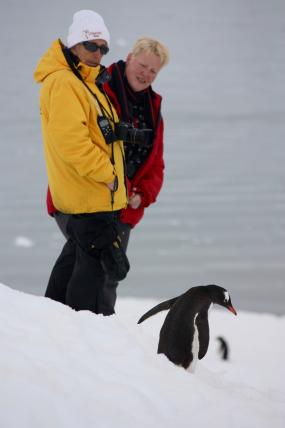 Verlassen erwachsene Tiere zudem ihre Brutstätten, sind die Eier und Jungtiere schutzlos den hungrigen Skuas, den Raubmöwen, ausgesetzt. Daher sollte vor allem bei brütenden Pinguinen und anderen Vögeln immer ausreichend Abstand eingehalten werden. Das oberste Gebot in der Antarktis lautet also: Tiere habe immer Vorfahrt! Abstand halten! Und niemals den Fluchtweg zwischen Einzeltier und Kolonie oder zum Wasser