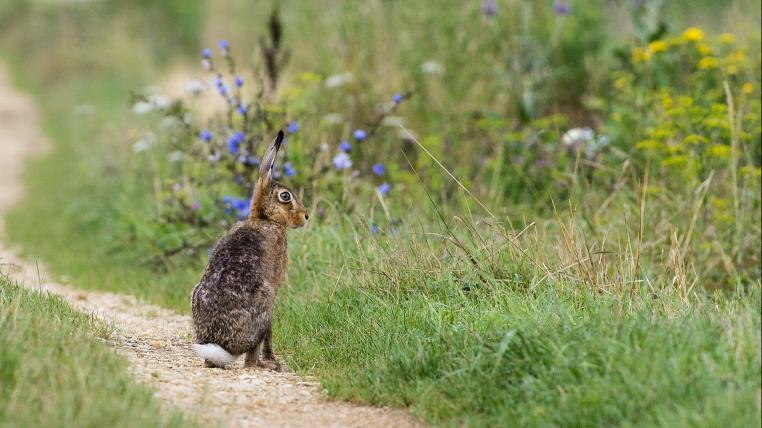 Wiesen mit farbigen Tupfern von Mohn, Labkraut und Wiesensalbei sind nicht nur eine Augenweide für Spaziergänger. Auch die Natur profitiert von diesen so genannten Buntbrachen. Wo es im Ackerland viele Buntbrachen und andere ökologisch wertvolle Flächen gibt, fühlt sich der Feldhase besonders wohl.