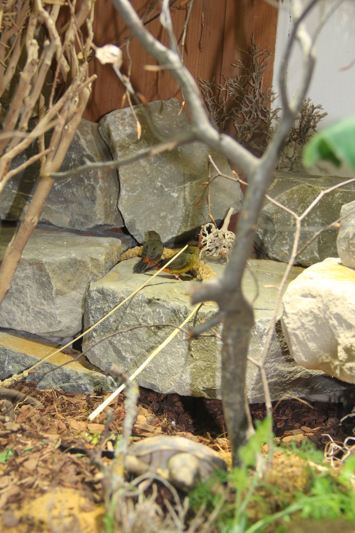 Auch eine Voliere für Savannenbewohner ist reizvoll. Mit Steinen, Wurzeln, Sand, Grasstubben aus der Natur und Zweigen lassen sich Situationen in den Weiten Afrikas oder Australiens nachstellen. Viele Prachtfinkenarten stammen aus diesen Regionen und schätzen solche Landschaften unter Menschenobhut. Vor allem eine Ecke mit Falllaub sieht gut aus und wird von den Vögeln peinlich genau untersucht. In Lebensraumvolieren gibt es immer Beschäftigung für die Vögel.