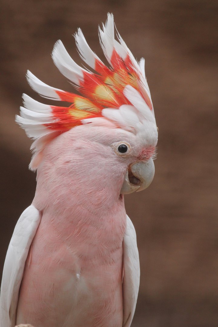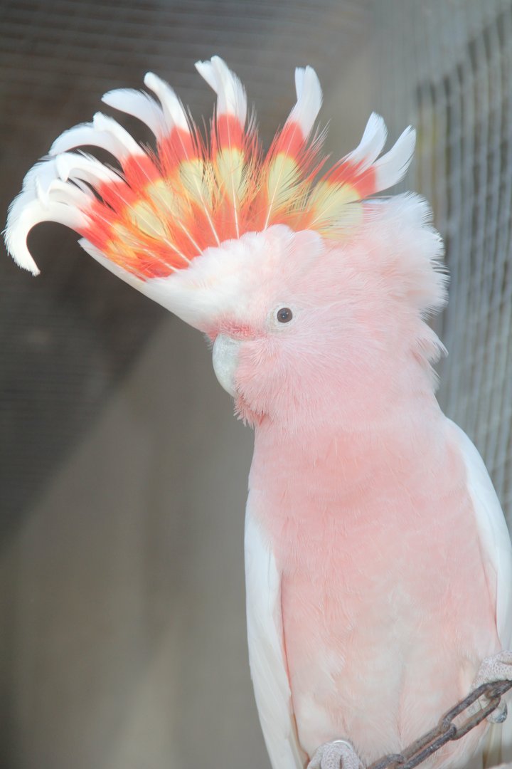 Wildfarbe: weiss-rosa, Federhaube weiss, rot und gelb