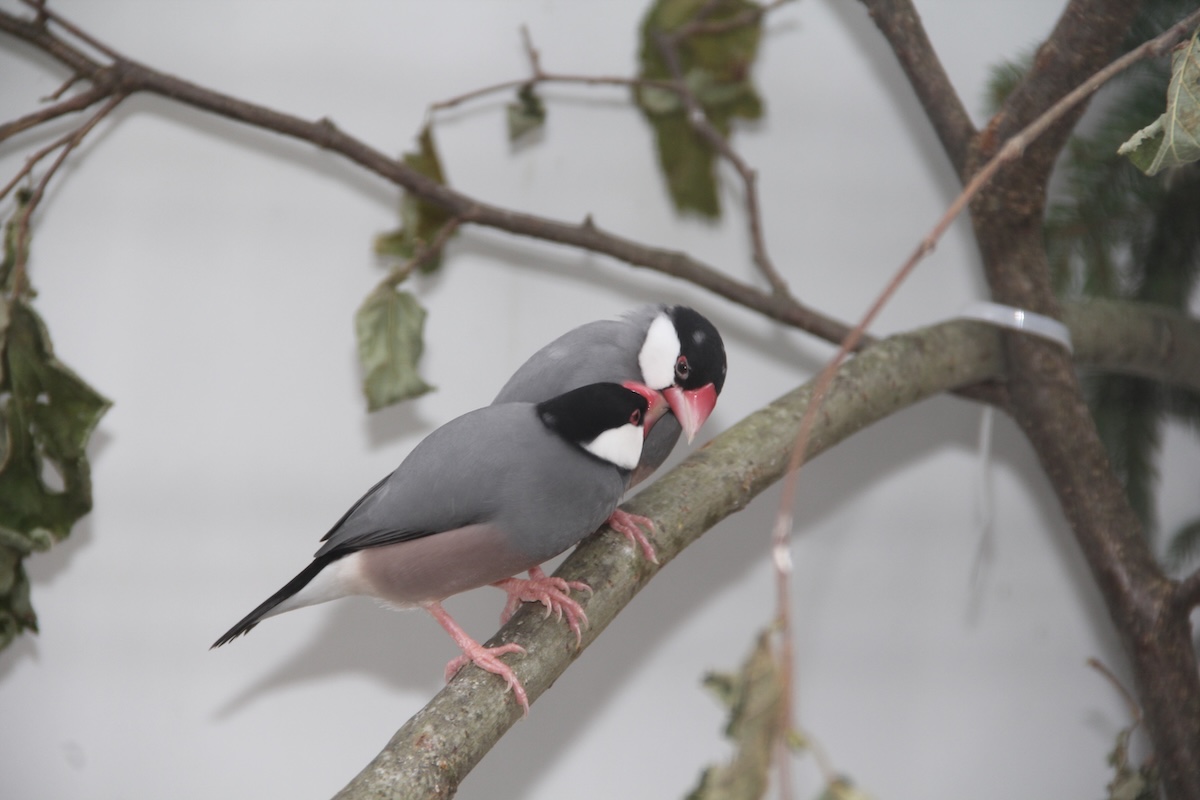 Meist führen Reisfinken monogame Beziehungen, sind also ihrem Partner zeitlebens zugetan. Einst kam diese Art in Riesenschwämen vor, heute ist sie bedroht. Diese fatale Entwicklung zeigt, dass nicht nur seltene Arten schützenswert sind, sondern eben alle. Gerade Arten, die weit verbreitet sind, können plötzlich selten werden, weil sich niemand um sie kümmert. Glücklicherweise ist aber der Reisfink in der Vogelhaltung etabliert, so dass in den Volieren gute Bestände vorhanden sind.