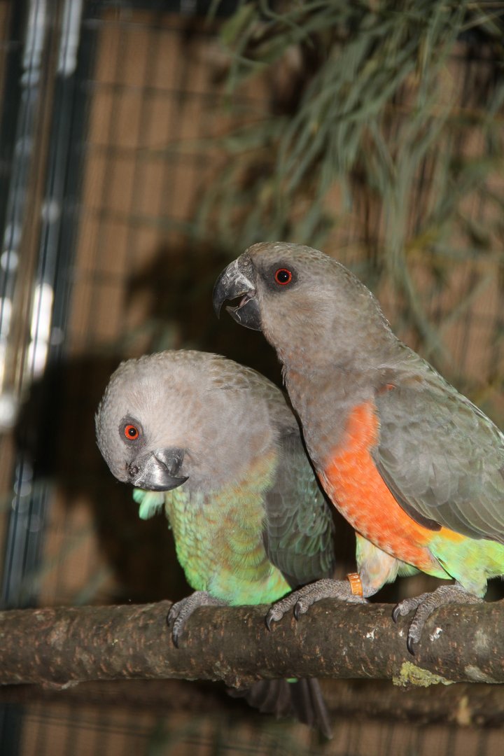 Vom ausgetrockneten Tarangire Fluss her klingt das Wiehern von Zebras in die flimmernde Hitze des ostafrikanischen Nachmittags. Einzelne Elefanten trotten im Flussbett und strecken ihre Rüssel in die wenigen Wasserlöcher. Ansonsten scheint alles zu dösen. Nicht ganz, denn aus einem Akazien-Busch innerhalb der Tarangire Lodge im Norden Tansanias fallen einzelne Blätter. Im Lichtspiel von Sonne und Schatten nesteln Rotbauchpapageien zwischen den Ästen an Blättern und Samenkapseln. Die dunkel befiederten Papageien sind kaum zu sehen, und sie verhalten sich bei ihren Aktivitäten ganz still. Nur die orangerote Brust der Männchen leuchtet aus dem Halbdunkel. Rotbauchpapageien gehören zu den Langflügelpapageien Afrikas und sind vom Norden Tansanias bis nach Äthiopien verbreitet. Sie leben in den typischen Savannen, die von Akazien und einzelnen Baobabs bestanden sind. Gegen den Abend hin weist Hussein Iddi, der Safariführer, auf ein Männchen hin, das in einem Sandpapierbaum Samenkapseln abknabbert. «In diesen Bäumen sind sie jetzt regelmässig zu sehen», flüstert der erfahrene Tierkenner, der seit Jahren mit Touristen die tansanischen Nationalparks erkundet. Normalerweise sind die Geschlechter bei Papageien gleich gefärbt, doch der Rotbauchpapagei bildet eine der wenigen grossen Ausnahmen. Nur die Männchen weisen eine solch markante orangerote Brust auf. Rotbauchpapageien kamen erstmals in geringer Anzahl 1920 nach England, starben aber dort bald wieder. Der London Zoo erhielt 1927 ein 1901 in Somalia von Hand aufgezogenes Exemplar, das länger lebte, vermutlich mindestens bis 1931. Erst ab 1980 wurden Rotbauchpapageien wieder in geringer Anzahl importiert. Es gelang, den Vögeln aus diesen Importen Bedingungen zu bieten, die sie dazu animierten, sich fortzupflanzen. 1983 gelang beispielsweise Dante Ferrari die Schweizerische Erstzucht der Exotis. So wurde diese Art langsam in den europäischen Volieren etabliert. Das war nicht einfach, denn die Sterblichkeit bei Jungvögeln war lange Zeit hoch.