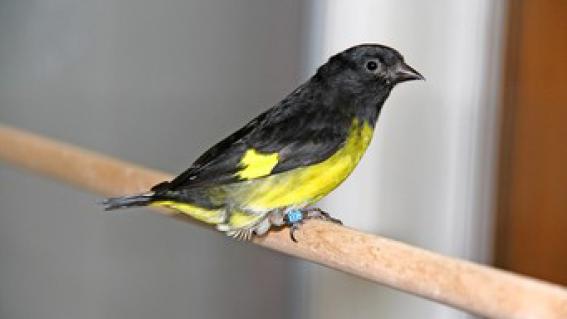 Auch der Züchter Heinz Kripahle aus Bern widmet sich verschiedenen Zeisigarten, darunter die attraktiven Gelbbauchzeisige mit schwarzem Schnabel. Diese Art hat ihr Verbreitungsgebiet von Costa Rica bis nach Nord-Bolivien. Auch Gelbbauchzeisige brüten um die 13 Tage, und die Jungen fliegen mit etwa 17 Tagen aus und sind dann nach bis zu drei Wochen selbstständig.