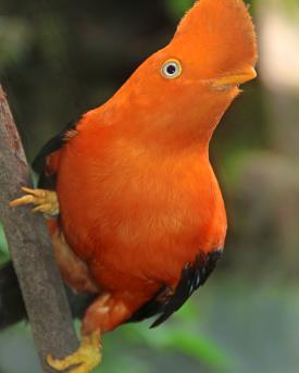 Hier hatte der Abenteurer einen besonderen Platz ausgemacht. Frühmorgens, in diesigem Licht, erschienen lebendige Feuerbälle aus dem tiefen Grün. Es waren Felsenhähne. Sie versammelten sich auf ihrem Balzplatz, plusterten ihr orange-rotes Gefieder auf. Die zwerghuhngrossen Vögel balzten auf äussersten Ästen in drei bis sechs Metern Höhe. Die liebestollen Vögel waren so sehr mit sich selbst beschäftigt, dass sie den staunenden Zürcher nicht wahrnahmen. Immer wieder verjagte das Hauptmännchen seine Konkurrenten, ununterbrochen flatterte es hin und her.