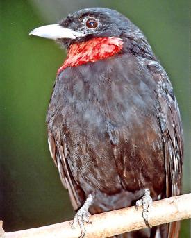 Sawyer unterhielt eine äusserst auserlesene Sammlung tropischer Vögel in harmonisch mit Pflanzen gestalteten Volieren. Dort flog auch eine Purpurkehlkotinga, die zur Gattung der Schildvögel innerhalb der Kotingas gehört, in einer mit Baumfarnen bewachsenen Aussenvoliere. Die Heimat dieser schwärzlichen Art mit purpurroter Kehle sind beispielsweise üppig bewachsene Bergtäler Venezuelas. Im Englischen wird sie Fruit Crow, also Frucht-Krähe, genannt. Dies weist auf die Hauptnahrung der meisten Kotingaarten hin, nämlich auf Früchte. Wenn sie aber Junge aufziehen, ist Lebendfutter wie Mehlwürmer und Käferlarven unerlässlich.