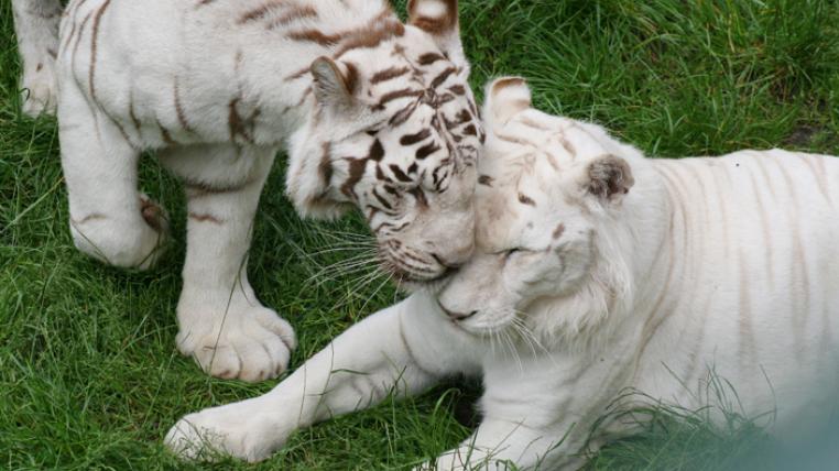 In freier Natur kommen weisse Tiger nicht mehr vor. Sie werden vom Menschen gezüchtet, und zwar zumeist untereinander. Das führt zu gesundheitlichen Problemen. Die Farb-Mutation hingegen beeinträchtigt die Gesundheit der seltenen Tiere nicht, berichten Forscher.
