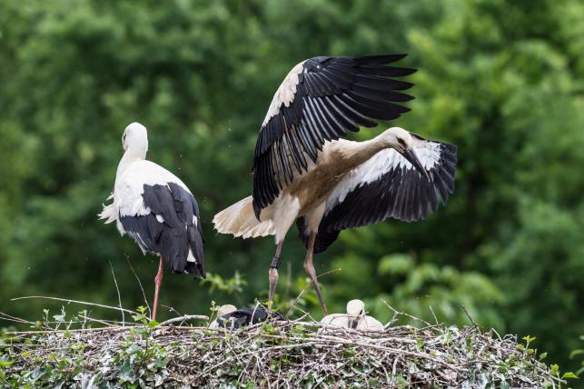 Um immer zu wissen, wo sie sich herumtreiben, werden im Zoo Basel immer wieder Störche besendert. So auch dieses Jahr. Für zwei Jungstörche sucht der «Zolli» noch Namen.