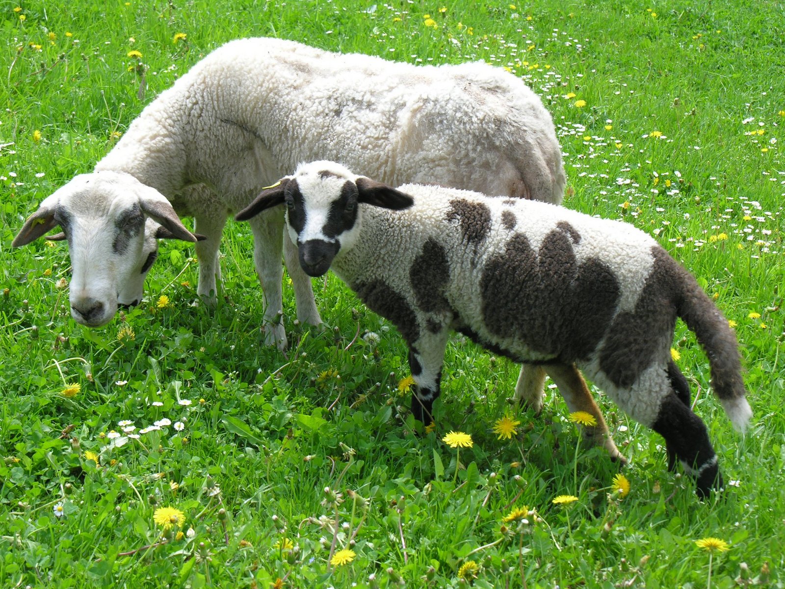 Zweimal pro Jahr können die Spiegelschaf-Auen Lämmer bekommen. Diese sind meistens am ganzen Körper gefleckt. Nach der ersten Schur wächst die Wolle weiss nach und die Tiere verlieren Ihre charakteristischen Jugendflecken