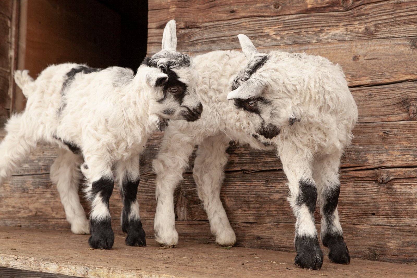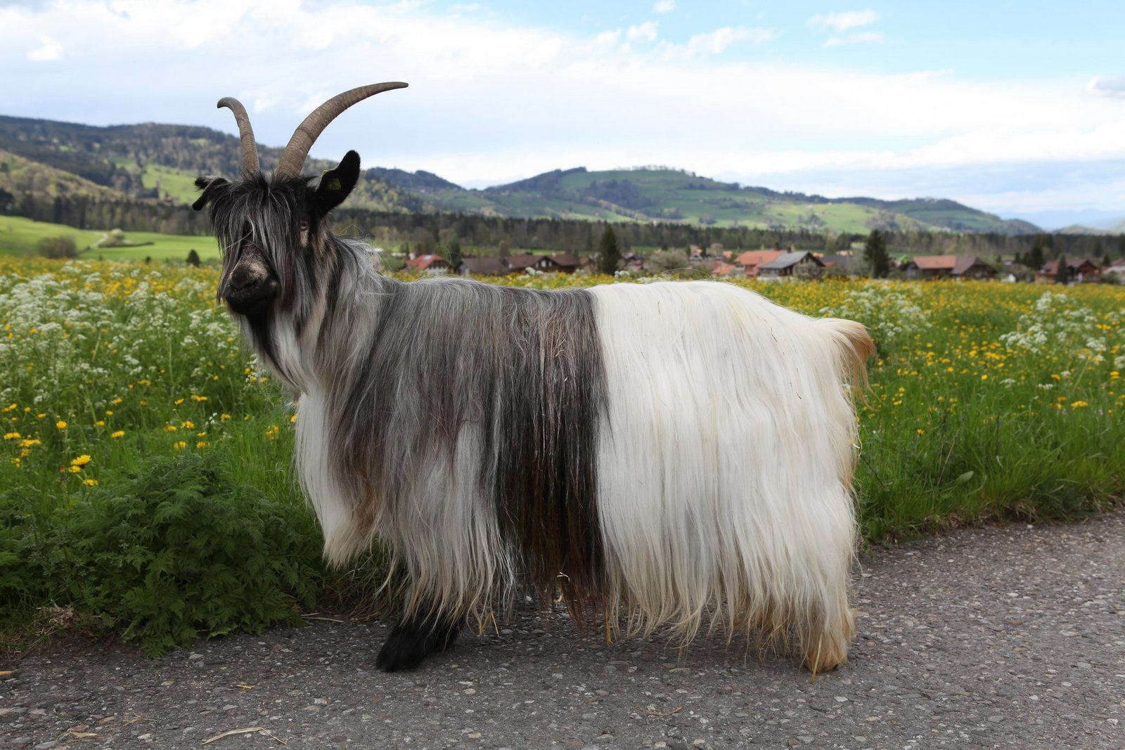 Der graue Körper verläuft zudem oft in eine hellere Farbe. Durch ihren Körperbau, Hörner und ihr längeres Fell sind die Rassen der Walliserziegen klar von anderen Schweizer Ziegenrassen zu unterscheiden.