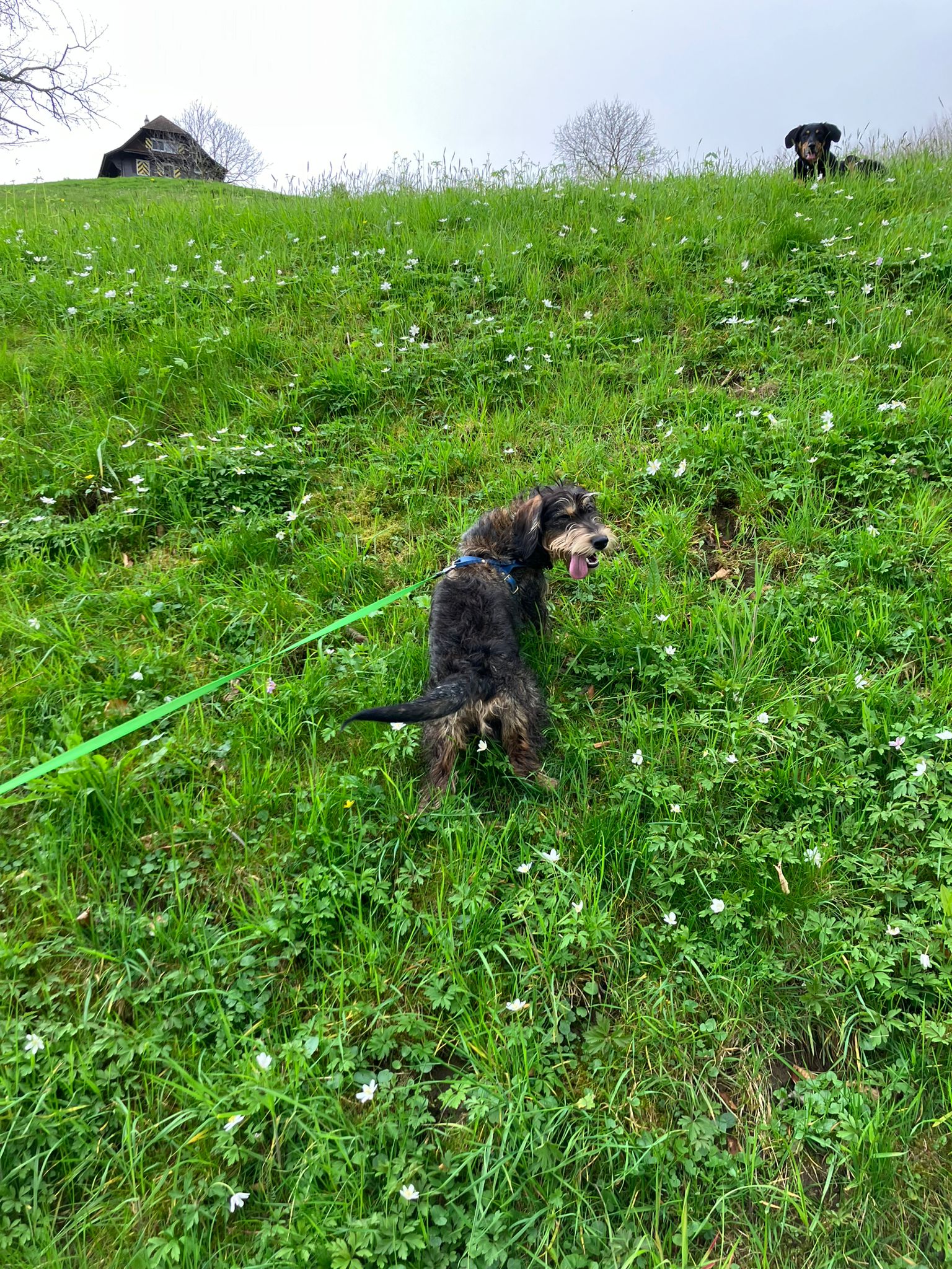 Mit dem Vertrauen, dass schon alles gut gehen würde und Frieda sich unter den anderen Hunden und Menschen bestimmt wohlfühlen wird, brachte ich sie frühmorgens in den Hort. Als ich bei meinem Reportagetermin in La Sarraz angekommen war, hatte ich auch schon die ersten Fotos und Videos vom Morgenspaziergang auf dem Natel. Es schien alles gut zu laufen. Und am Nachmittag hatte Frieda bereits eine erste Freundschaft geschlossen – mit der Dackeldame Wilma. Die beiden machten es sich dann auch zur Nachtruhe gemeinsam bequem.
