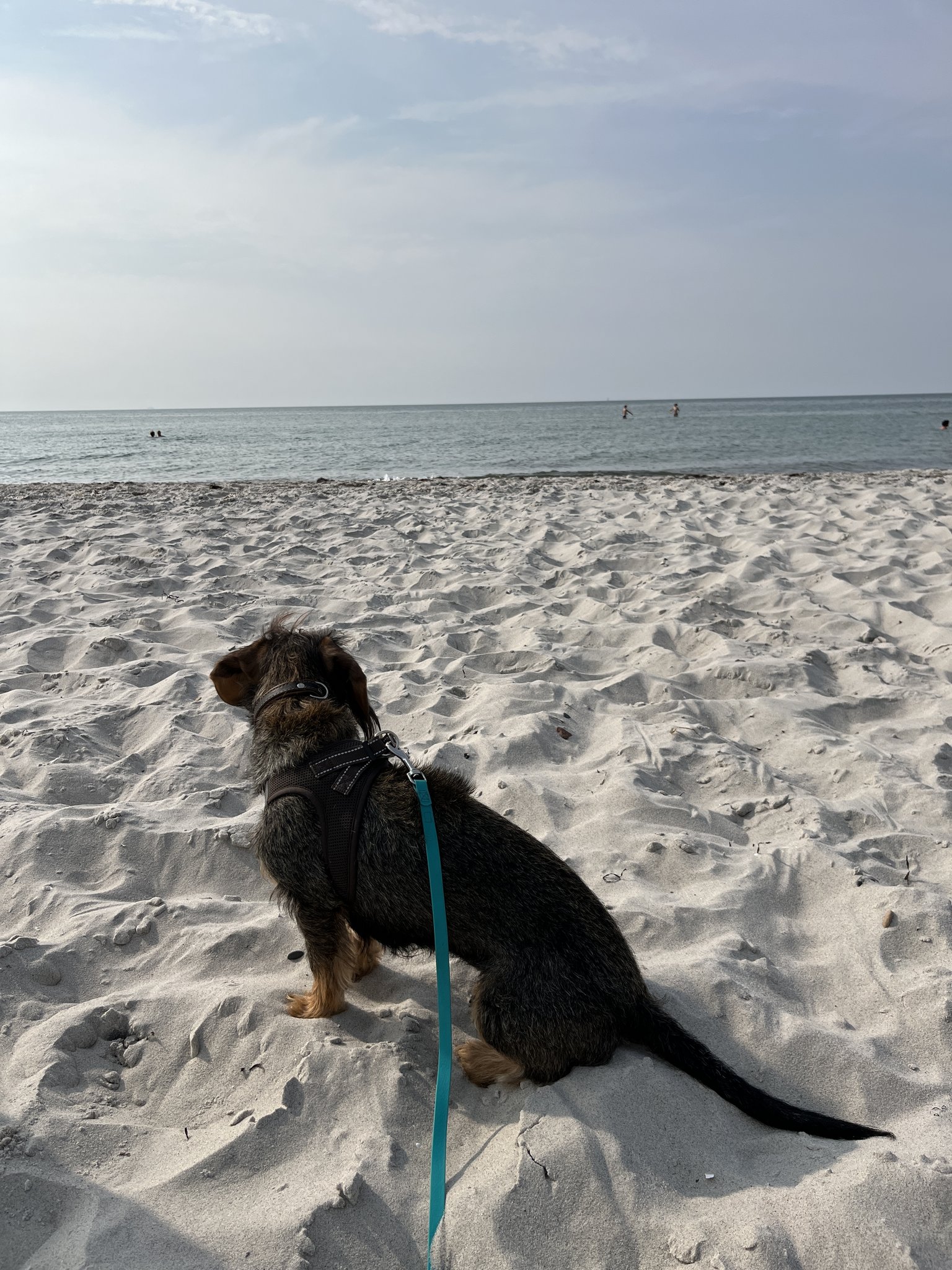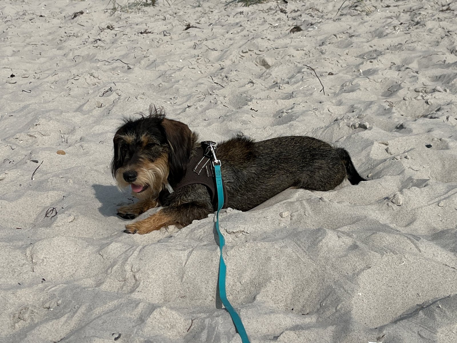 Unser erstes Ferienziel hiess Wismar. Das Städtchen an der Ostsee stellte sich als optimale Hundedestination heraus. Nicht zu hektisch, überall waren Hunde willkommen und es gab auch viele Hundekollegen anzutreffen. Das Beste an Wismar fand Frieda allerdings, dass die ausgedehnten Strände mit feinstem Sand und anschliessenden grossen Wäldern in unmittelbarer Nähe lagen. So war unser Ausflug auf den Darss auch der erste grosse Höhepunkt für Frieda. Dort konnte sie kilometerweit im Sand spazieren, herumtollen und anschliessend vor einem atemberaubend schönen Sonnenuntergang ein riesiges Loch in den Sand buddeln – was will das Dackelherz mehr?