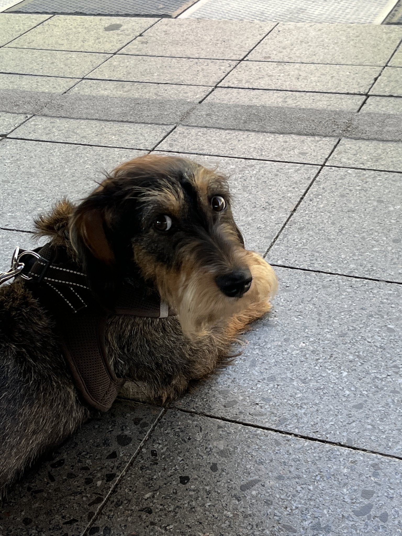 Tapfer marschierte sie in die S-Bahn und durch Berlins Strassen und wartete geduldig, während wir Buchhandlungen durchstöberten oder zur Abkühlung ein Glacé assen. Bei den hitzigen Temperaturen von über 30 Grad hing nämlich nicht nur Frieda die Zunge aus dem Maul.