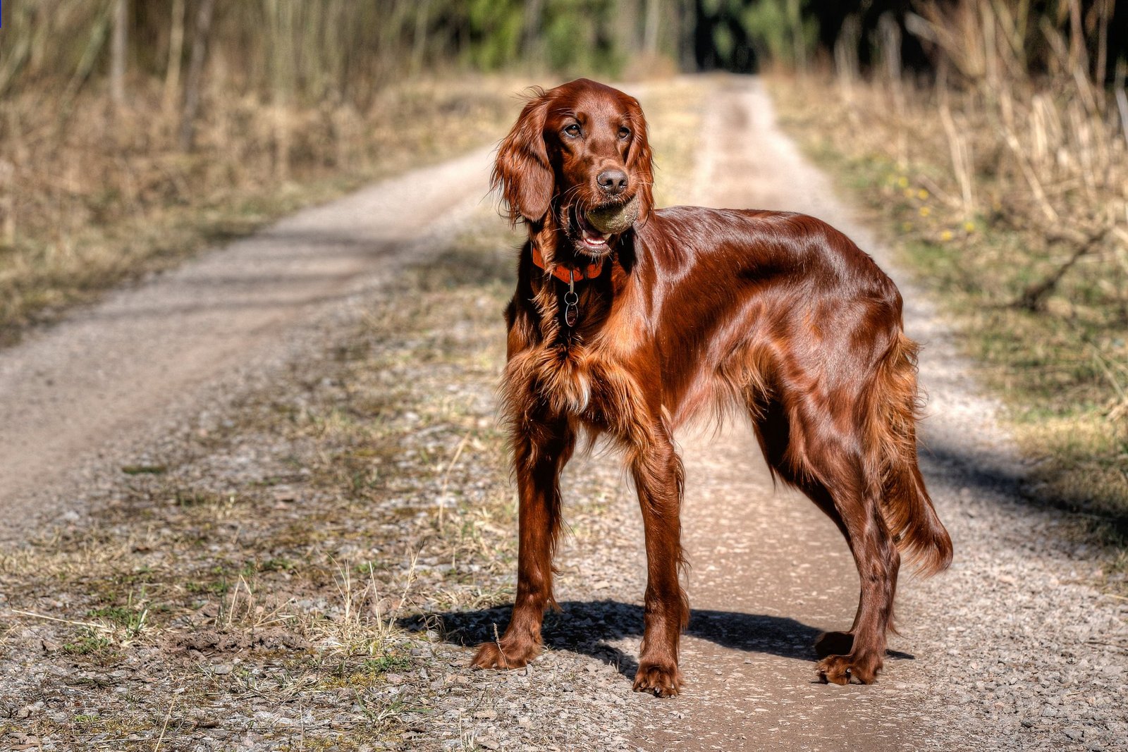 Er ist ein energiegeladener und freundlicher Hund, bekannt für sein auffällig glänzendes rotbraunes Fell. Beliebt bei Jägern und Familien gleichermassen, benötigt der Irish Red Setter viel Auslauf und Beschäftigung.