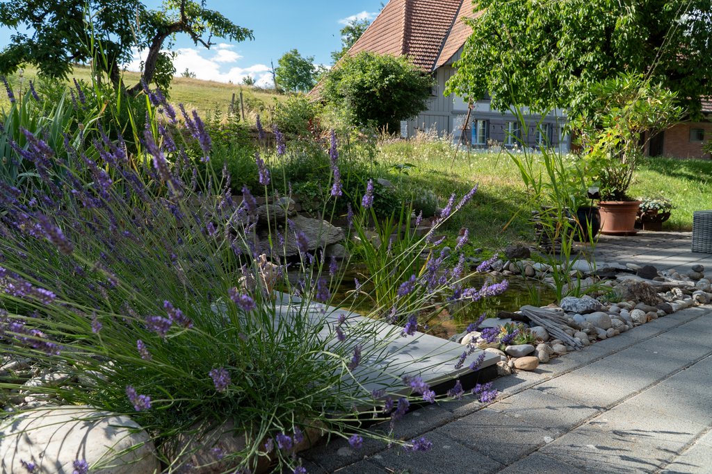 In Lüsslingen-Nennigkofen geht seit 2021 eine Biodiversitätswelle durch die Ringstrasse. Angestossen hat es der junge Schreiner Adrian Schluep, der während der Corona-Pandemie im Garten seiner Eltern einen kleinen Teich anlegte. Mit der Zeit gesellten sich Königskerzen, Lavendel, Natternköpfe, wilde Malven, Stein- und Totholzhaufen, eine Ruderalfläche und ein Hochbeet mit Kräutern dazu. Dahinter gedeiht anstelle einer Grasmatte eine Wildblumenwiese, die Schluep nur zwei Mal im Jahr mäht, damit die Pflanzen ihre Samen absetzen können. Auch bei den Nachbaren versuche er diese Idee beim Mähen des Rasens umzusetzen und wurde mit der Zeit zur Inspiration für das ganze Quartier.