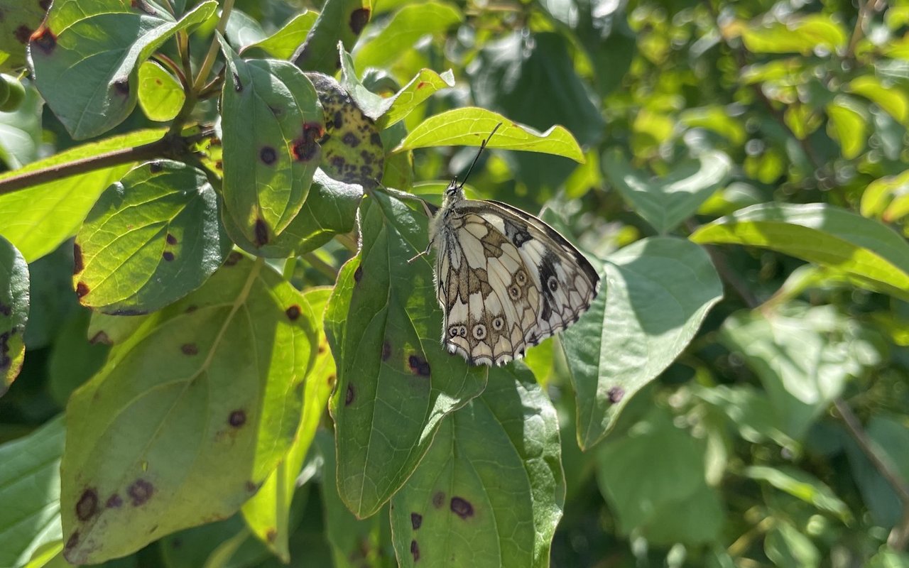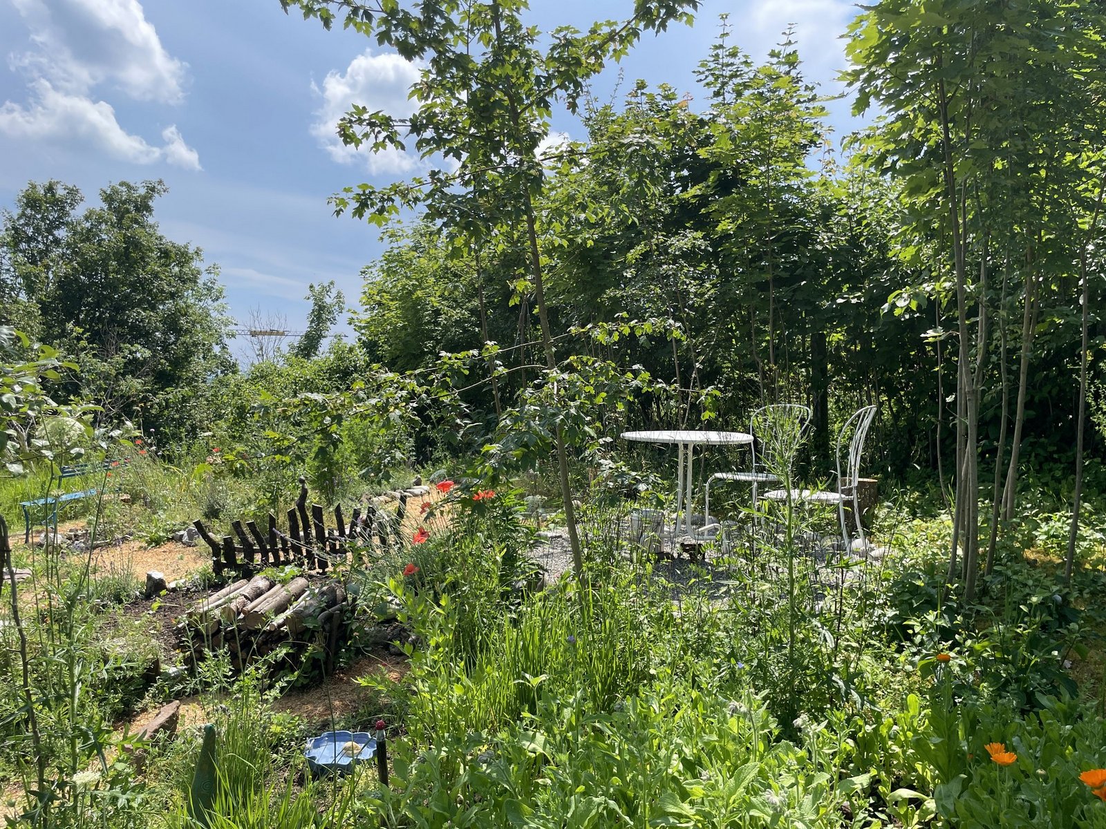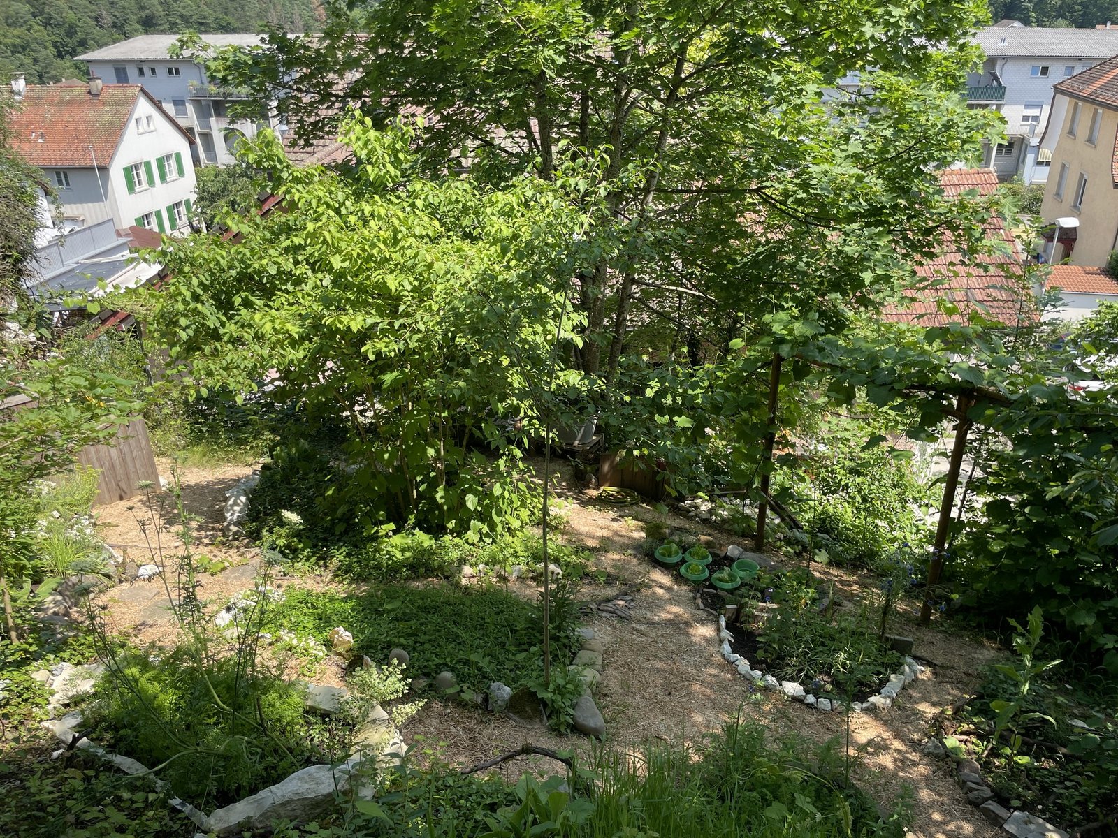 Viele Jahre arbeitete Cony Zwahlen auf dem Bau, hatte gar ein eigenes Geschäft. Nach einem Unfall musste sie sich komplett umorientieren und mietete eine Werkstatt, um aus Sturmholz Kunstskulpturen zu sägen und zu schnitzen. Die gegenüberliegende Böschung war zu der Zeit noch komplett mit Brombeeren, Weinreben und Berufkraut überwuchert, dazwischen lag viel Müll. Das juckte die naturverbundene Unternehmerin in den Fingern. Mit der Idee, einen Platz für Schmetterlinge zu schaffen, fragte sie ihren Vermieter, ob sie die verwilderte Böschung zähmen dürfe. Sie durfte und begann 2022 mit der Errichtung einer biodiversen Oase.