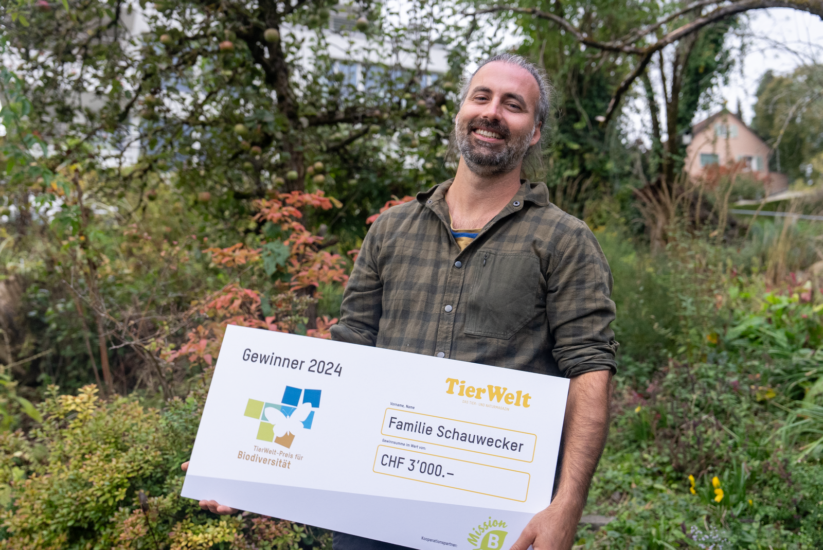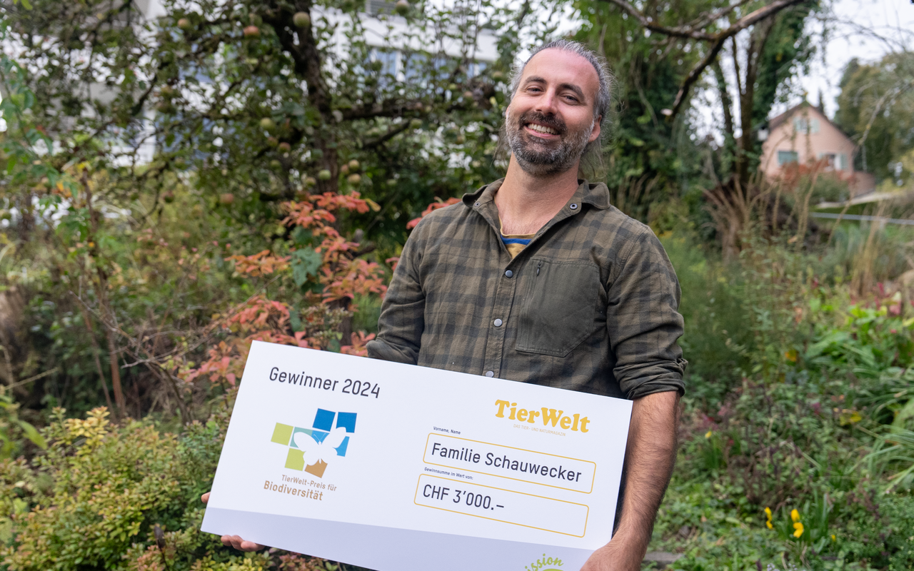 Die Familie Schauwecker hat etwas Einzigartiges geschaffen: ein Wildbienenparadies mitten in der Stadt Zürich. Auf 300 Quadratmetern wachsen über 500 verschiedene Pflanzenarten. Das Herz von Yannik Schauwecker schlägt für Wildbienen. Der Naturgarten des 38-jährigen Umweltingenieurs soll seinen Lieblingen das ganze Jahr über Futter bieten. Seit über 30 Jahren pachtet die Familie den Garten, seit 15 Jahren arbeitet Yannik Schauwecker aktiv mit. Nun gewann er die Gunst der Tierwelt-Leser und holte sich beim Voting den Biodiversitäts-Award als Publikumsliebling. Wir gratulieren!