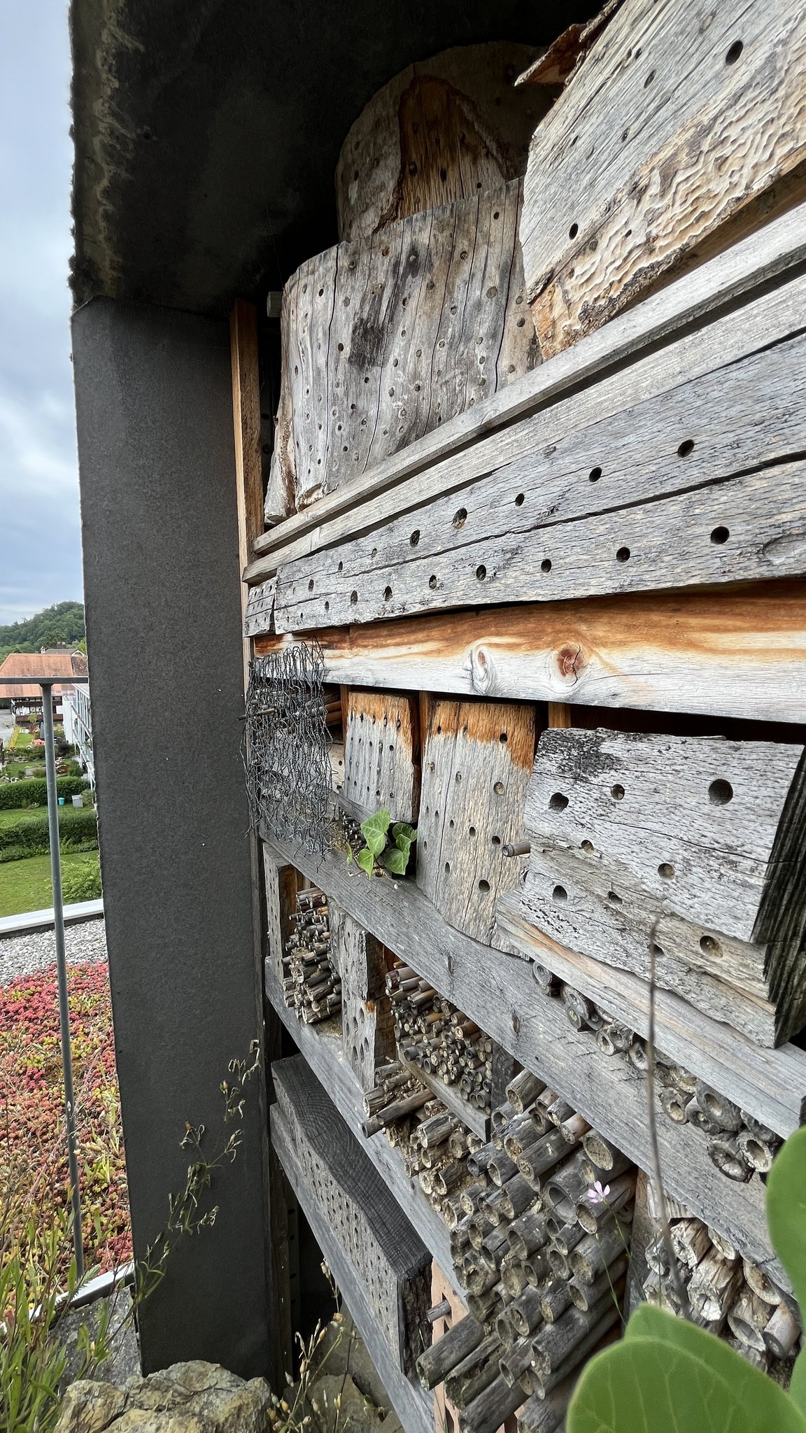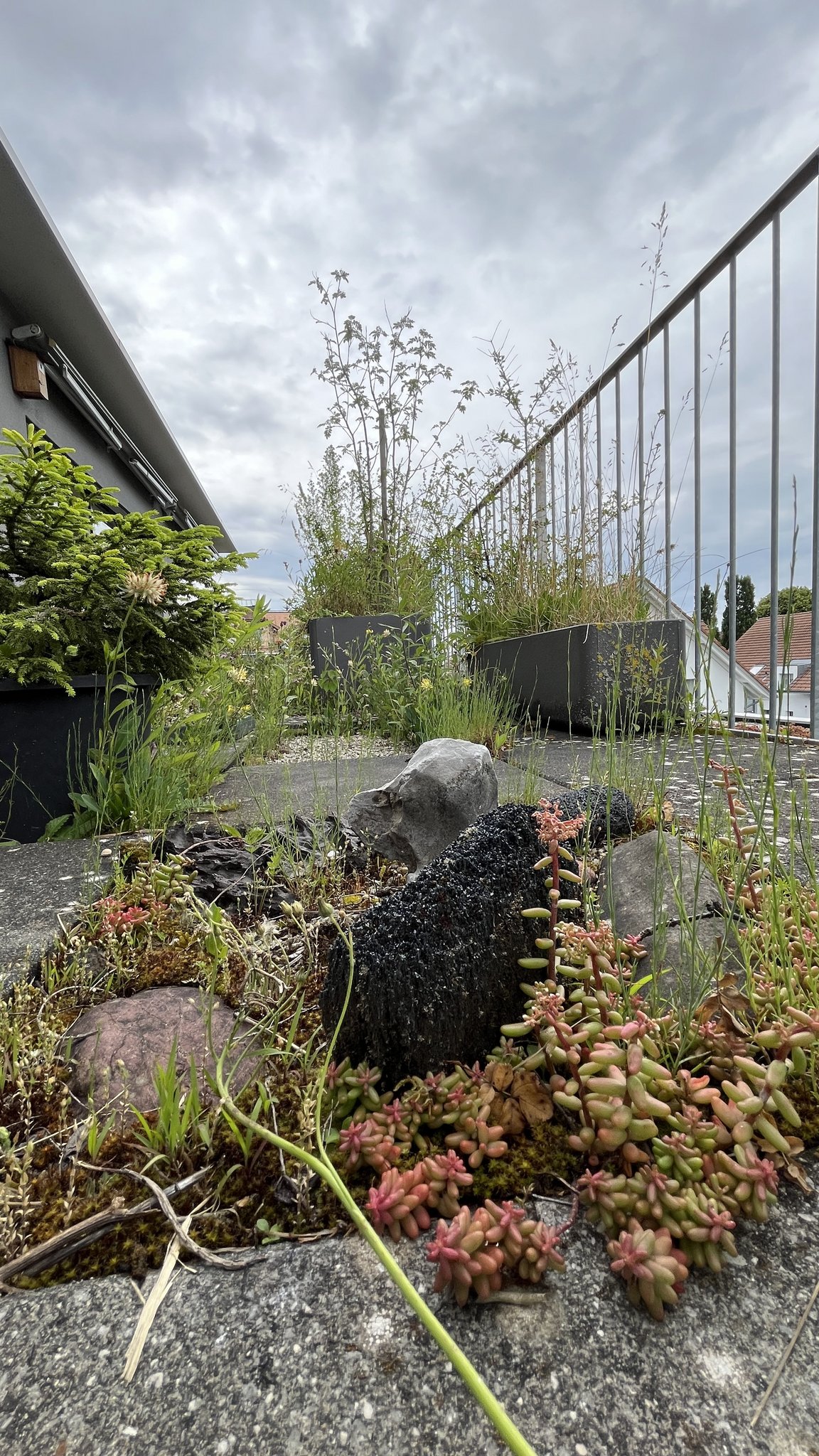 … die Vielfalt der Lebensräume, wo die verschiedensten Pflanzen- und Tierarten existieren können und ihr Wechselspiel stattfinden kann. Ihnen eine solche Lebensgrundlage zu bieten, ist mir sehr wichtig. Für mich persönlich ist es wahnsinnig toll, hier oben auf dem Balkon so viel Spannendes beobachten zu können. Gerade die Vögel und Insekten zu betrachten, ist ein grosses Erlebnis.