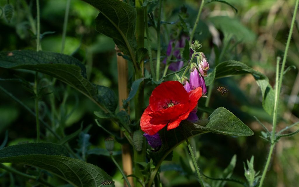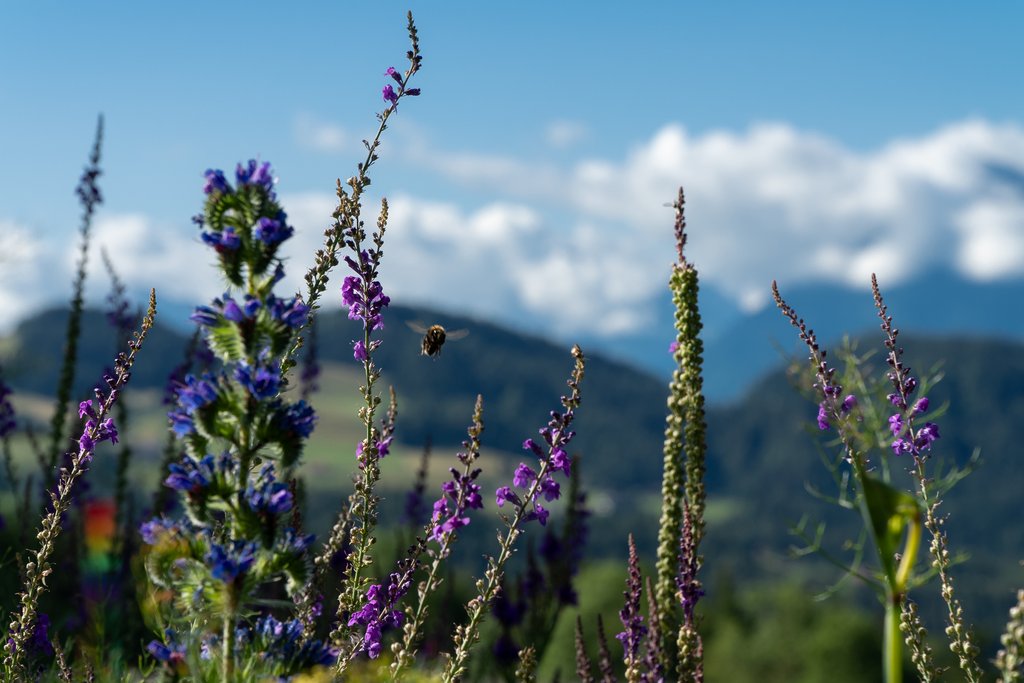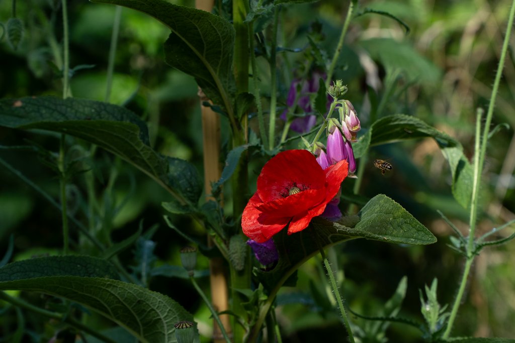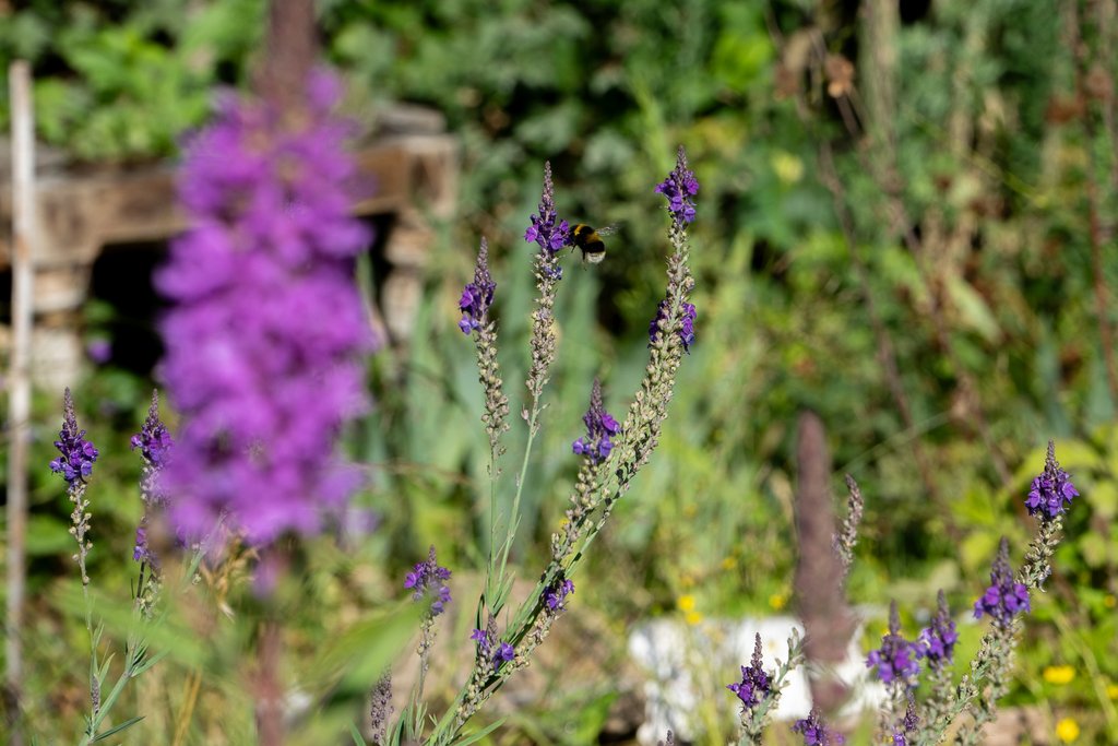 Ursprünglich wollte der zweifache Vater einen Gemüsegarten anlegen. Aber er habe es nie übers Herz gebracht, das «Unkraut» zu jäten. Jetzt wächst alles ein bisschen nebeneinander: Der Kürbis auf dem ehemaligen Komposthaufen, der Fenchel neben den Farnen, die wilde Möhre neben Mohn und Malven. So präsentiert sich am Südhang bei Fahrni ein wild gepflegter Naturgarten mit einmaliger Aussicht auf die Alpen. «Ich möchte zeigen, dass man auch in einem kleinen Mietgarten etwas Schönes kreieren und Platz für Wildtiere schaffen kann.» Als nächstes will er die Kaukasus-Fettkraut-Überreste durch Thymian ersetzen und aus dem Kiesplatz einen Sandplatz für Bienen machen.