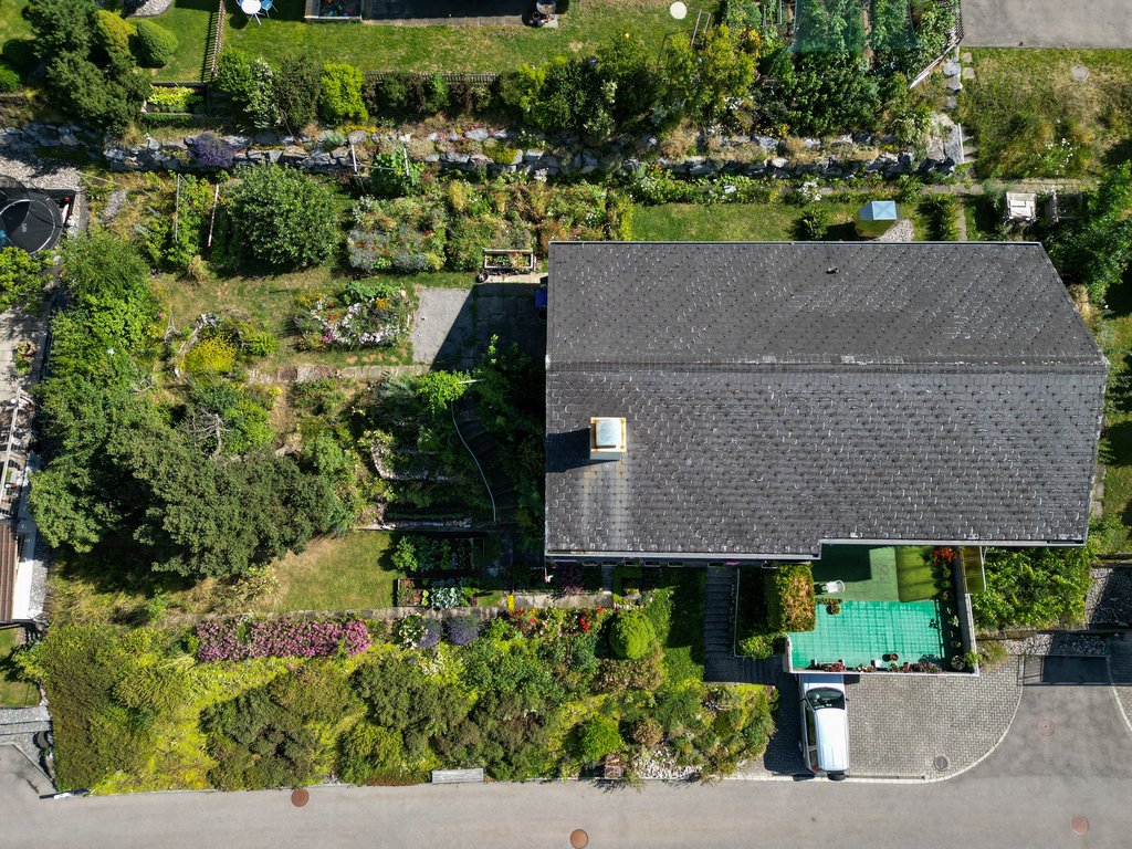Als die Familie Stutz Anfang 2018 nach Fahrni zog, war ihr Garten mit Rollrasen, Cotoneaster und Kirschlorbeer begrünt. «Das musste alles raus», sagt Martin Stutz. Der 49-Jährige hat den kleinen Mietgarten seither in einen Naturgarten mit einem Teich und vier Beeten verwandelt, in dem sich diverse Vögel, Bienen, Libellen, Frösche, Kröten und unzählige Marienkäfer tummeln. Über 150 Pflanzensorten habe der Heilpädagoge auf einer Fläche von 100 m2 gezählt und erfasst: Wildrosen, Natternköpfe, Wermut, Schlafmohn, Holunder, Brennnesseln, Skabiosen, Mutterkraut, Disteln und vieles mehr wächst auf kleinem Raum. Die meisten Pflanzen und Samen holt er direkt aus der Natur und verteilt sie im Garten. Selten kauft er auch mal etwas. «Das teuerste war bisher die Teichfolie für 100 Franken», sagt Martin. «Ich habe viel Zeit aber wenig Geld investiert.»