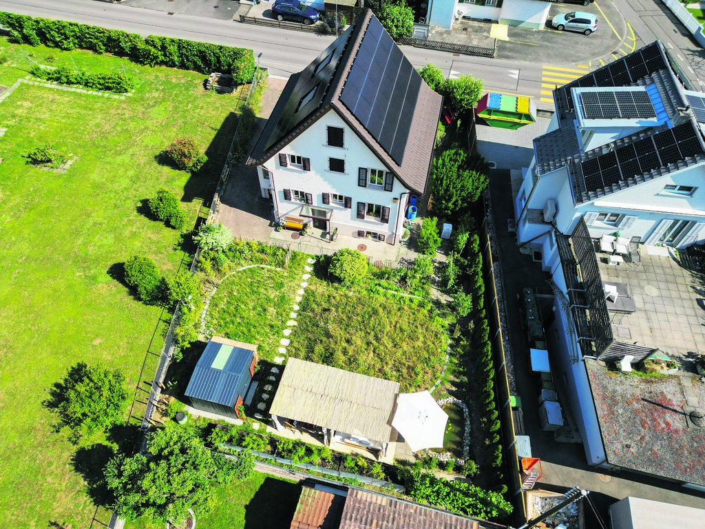 Kaum ist Matthias Wild mit seiner Frau Camila aus der Zürcher Altstadt nach Buchs bei Aarau gezogen, begann er den strukturierten Garten seiner Grossmutter zu bearbeiten. Nach ersten Versuchen im Vorgarten vor drei Jahren packte er das Projekt 2022 gemeinsam mit einem Naturgärtner grossflächig an und liess den kompletten hinteren Garten umwälzen: Der grüne Rasen wich einer Blumenwiese mit einem Gehweg aus Steinen eines nahegelegenen Steinbruchs. Neben dem Sitzplatz hat Wild vor einigen Wochen einen Teich angelegt, der bereits rege von Wildtieren besucht wird. Auch den Vorgarten zieren Wildpflanzen und ein kleiner Teich, den Libellen immer wieder aufsuchen. Eidechsen haben sich ebenfalls im Garten ausgebreitet und sonnen sich auf den trockenen Steinhaufen vor dem Haus.