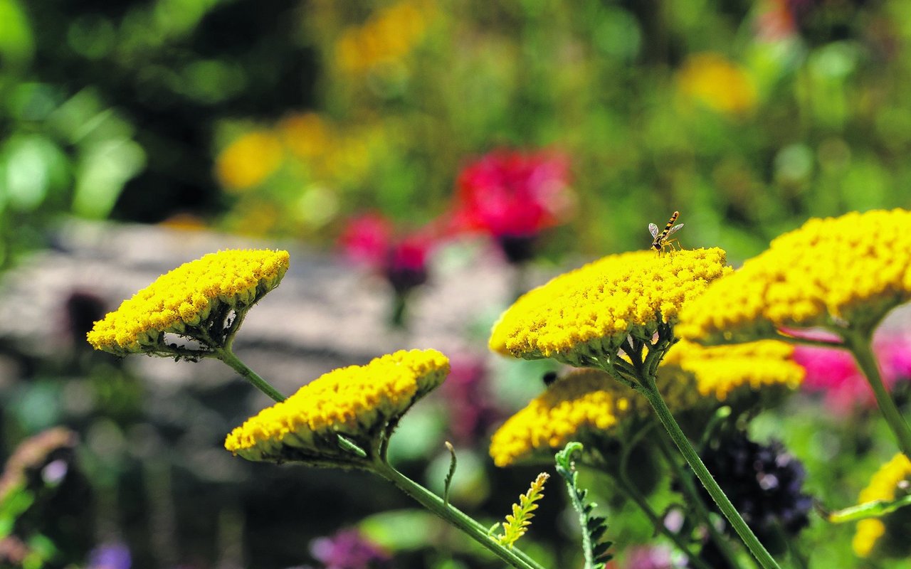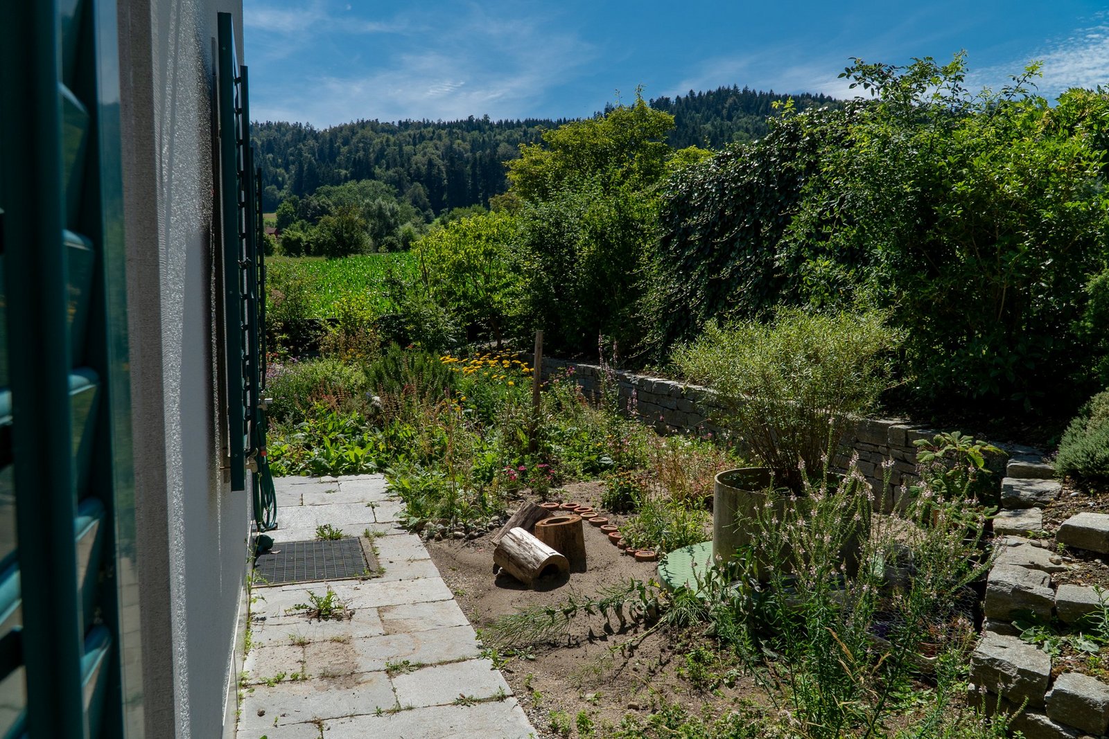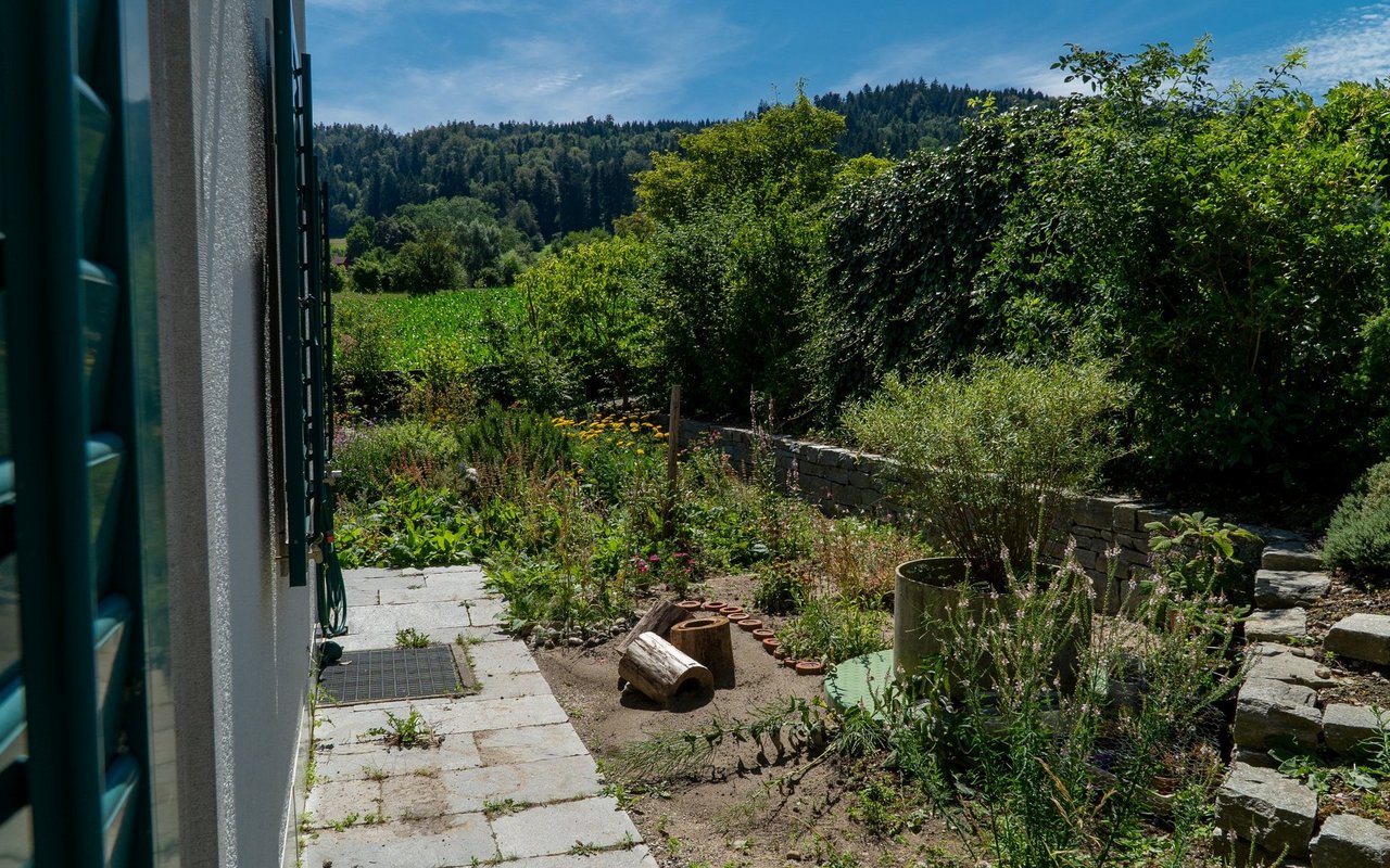 Früher pflegte Susi Manser einen englischen Garten mit grünem Rasen und Kirschlorbeer-Hecken. Während ihrer Ausbildung zur eidgenössisch diplomierten Imkerin im Jahr 2020 riss sie die Neophyten aber aus und setzte stattdessen auf den 100 m2 einen artenreichen Wildpflanzengarten, der von Februar bis Dezember blüht und Nahrung für jegliche Bienenarten bietet. So wachsen im Einfamilienhaus-Garten Wegwarte, Natternköpfe, Wiesensalbei, Dost, Baldrian, Flockenblume, Heilzeist, Muskatellersalbei, Nachtkerze, Kornelkirsche, Schwarz- und Weissdorn und vieles mehr auf engstem Raum. Unzählige Wild- und Honigbienen sowie Schmetterlinge machen sich gleichermassen über das Blütenmeer her. «Ich möchte zeigen, dass Wildbienen und Honigbienen nebeneinander existieren können», sagt Manser. Besonders Freude hat sie an der Königskerze, die sich im Garten breit macht und die bis zu ihrem Absterben vier Jahre lang ökologisch wertvoll sei.