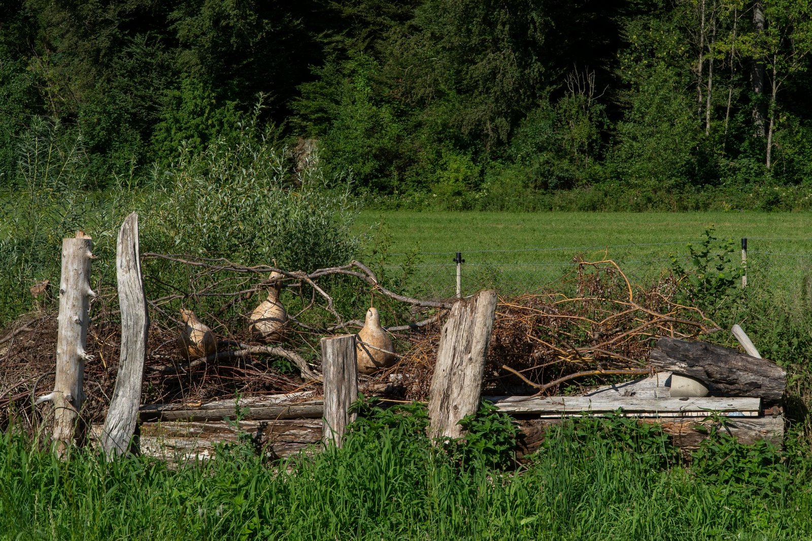Es gab viele aufwendige Projekte. Die meiste Arbeit steckt wohl in den riesigen Benjeshecken, den Totholzhaufen und dem Pflanzen von hunderten von Bäumen und Sträuchern. Das grossflächige Anlegen der Blumenwiese war ebenfalls harte Arbeit. Auch das Sammeln der alten Dachziegel und der Bau des Sandarium ging über Wochen.