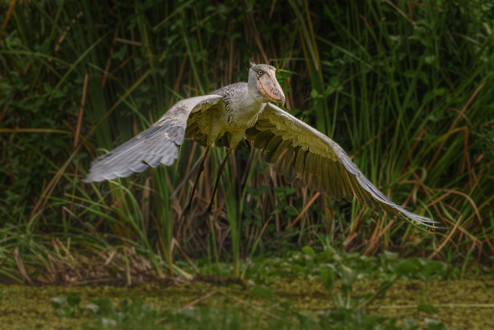 Der durchdringende Blick des Schuhschnabels lässt einem die Haare zu Berge stehen. Die aussergewöhnlichen Vögel sind gefährdet und ihr natürlicher Lebensraum ist zunehmend bedroht.