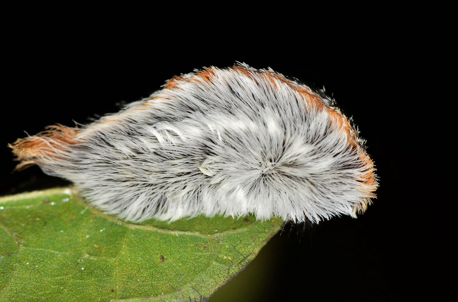 Das flauschige Aussehen der Raupe der Südlichen Flanellmotte täuscht: Ihre Haare sind giftig und lösen bei Berührung Schmerzen aus. Für manche hat die Raupe Ähnlichkeit mit der Frisur von Donald Trump.